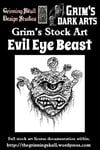 Grinning Skull Studios brings you more Grim's Stock Art with The Evil Eye Beast a pack of 3 images of this terrible beast (1 b&w, white bkground, 1 b&w, Grey bkground, 1 colour.) sized at 765x908, and at 300dpi. Perfectly fitting fantasy art to use in your own projects and commercial publications.