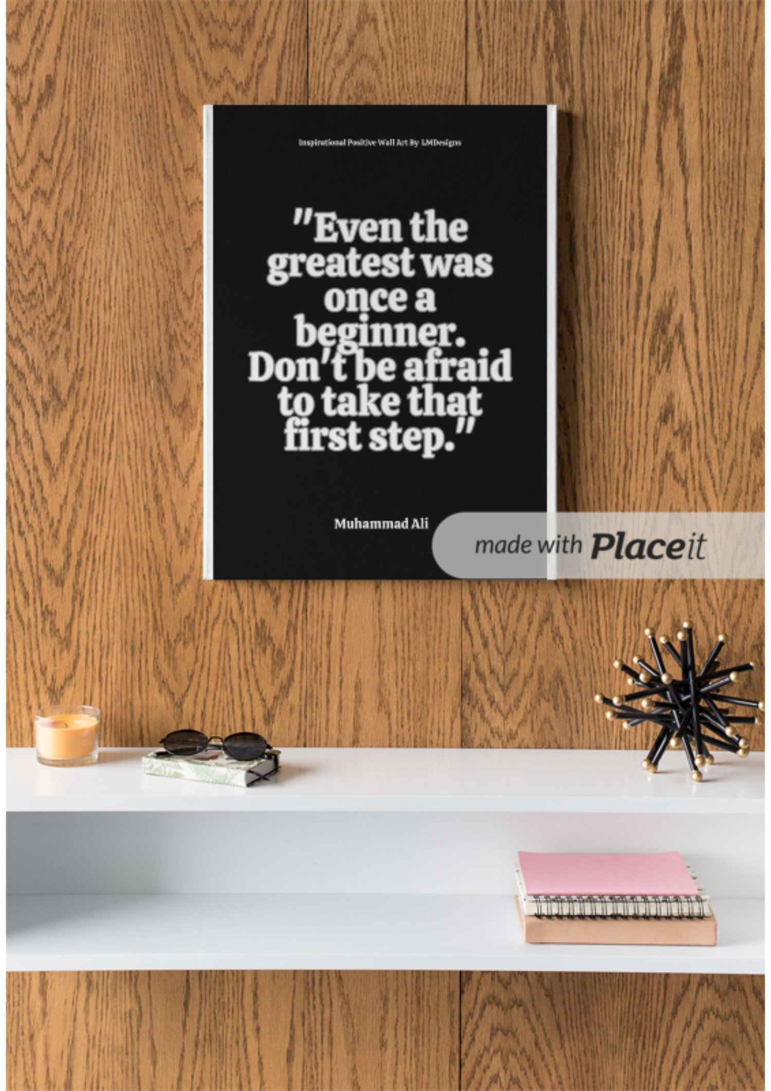 Embrace the spirit of perseverance and inspiration with our motivational poster featuring the iconic quote by Muhammad Ali: This powerful statement serves as a reminder that every journey starts with a single step, encouraging you to pursue your dreams and face challenges with courage.