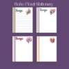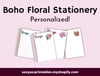 Personalized And Printable Boho Floral Stationery | Boho Writing Paper | Floral Note Paper | Boho Floral Penpal Paper