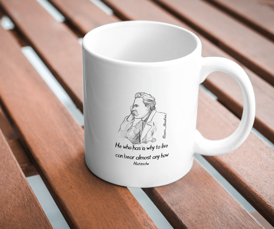Nietzsche Quote Print – Deep Philosophy Gift | Tote Bag, Mug A strong Why can overcome any How! Perfect gift for ourselves or our friends and family!