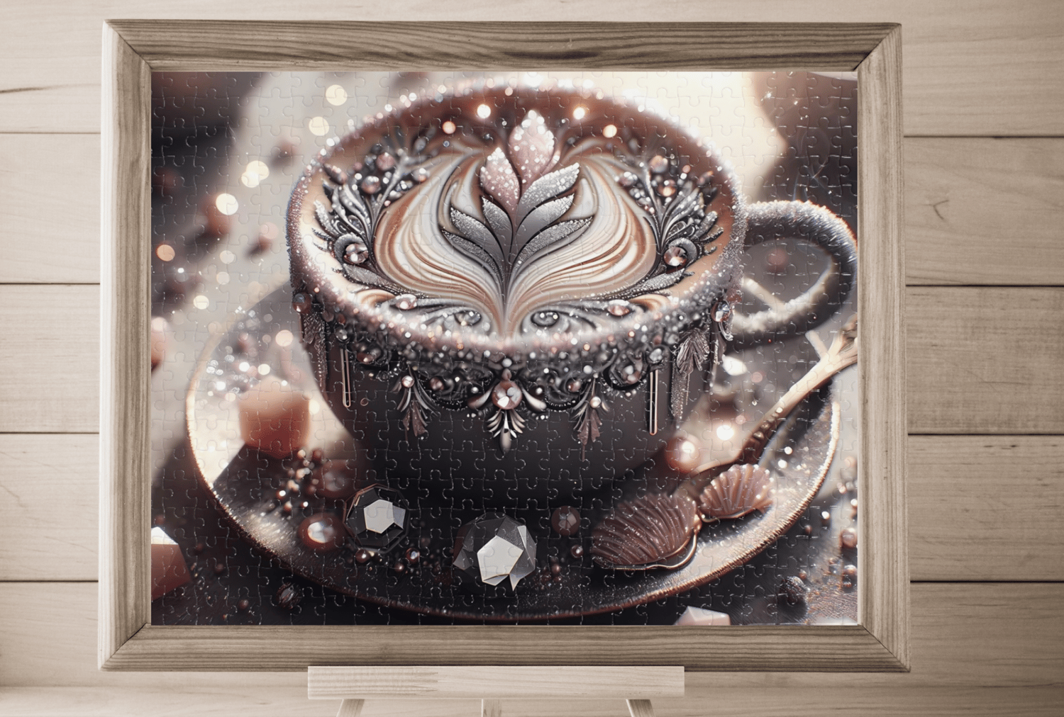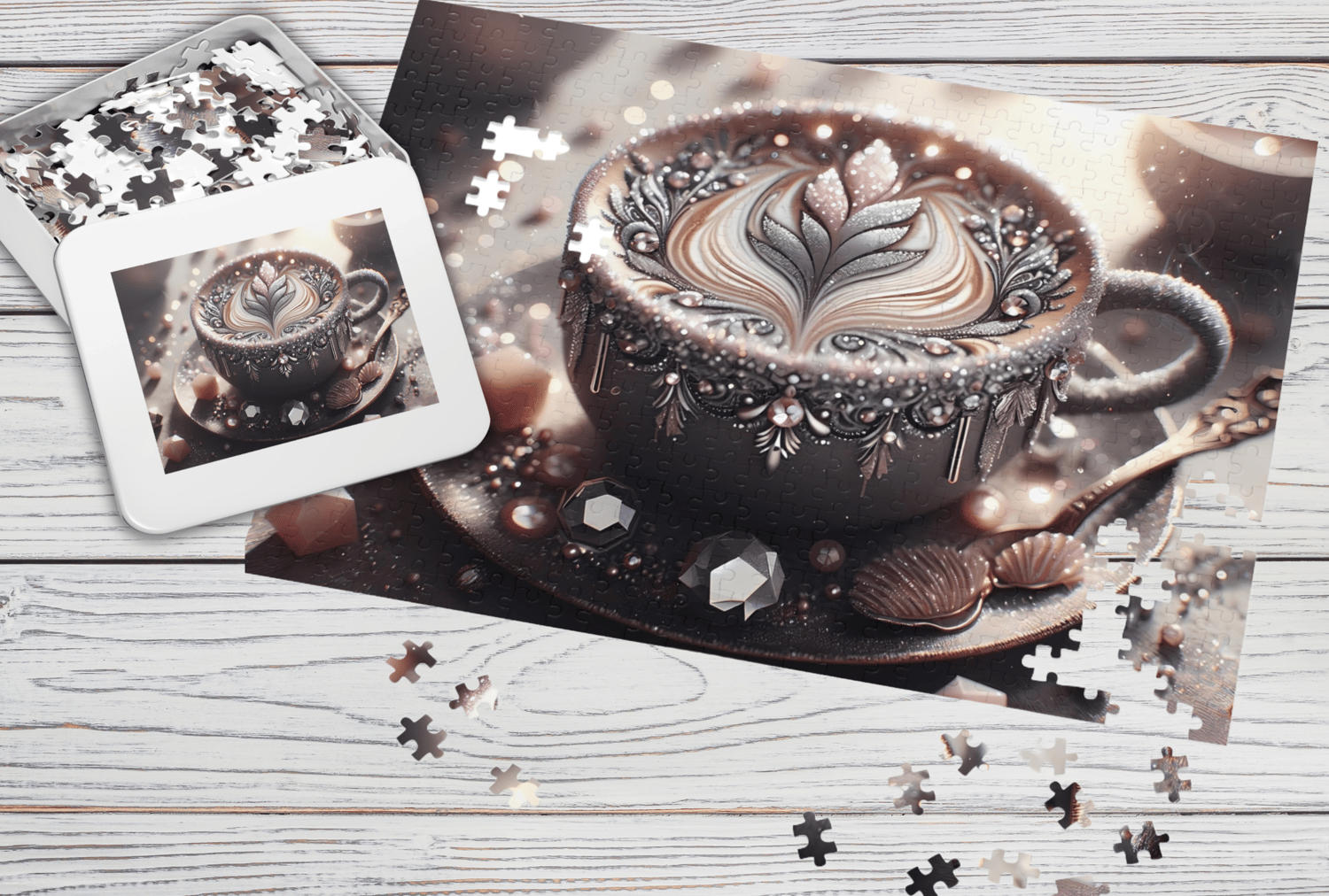 Embrace the allure of the "Mystic Mocha" jigsaw puzzle, a piece of art that invites you to piece together the beauty of an opulent coffee experience. Available in both a luxurious 1000-piece edition and a delightful 500-piece version, this puzzle offers an enchanting activity for coffee lovers and puzzle aficionados alike.