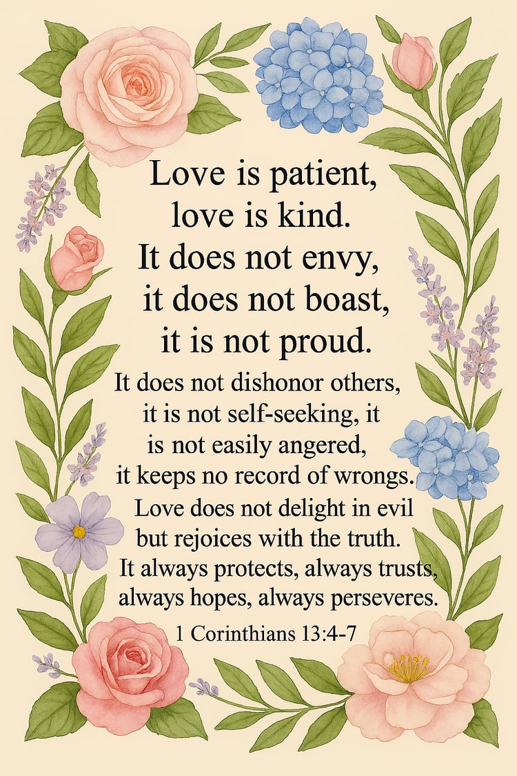 Celebrate sacred covenant with this Christian wall art featuring Malachi 2:15. Designed with a dark red background, ornate gold frame, and red, yellow, and purple florals, this printable affirms the spiritual depth of marriage and the call to faithfulness. Perfect for weddings, ministry kits, and devotional spaces.