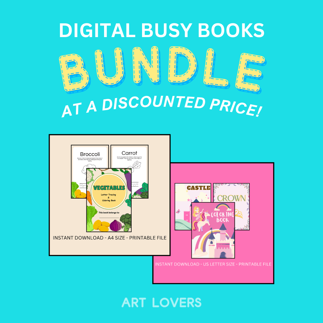 DIGITAL BUSY BOOKS BUNDLE for Kids (3-11 Years Old) - Letter Tracing & Coloring