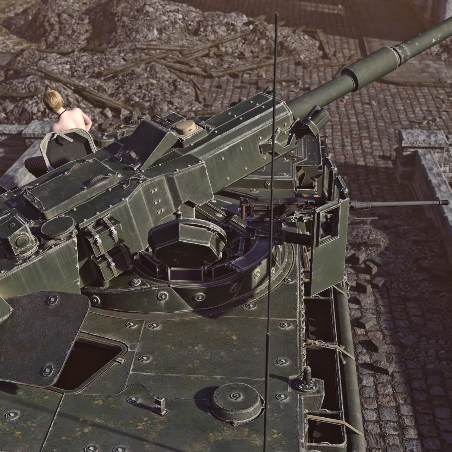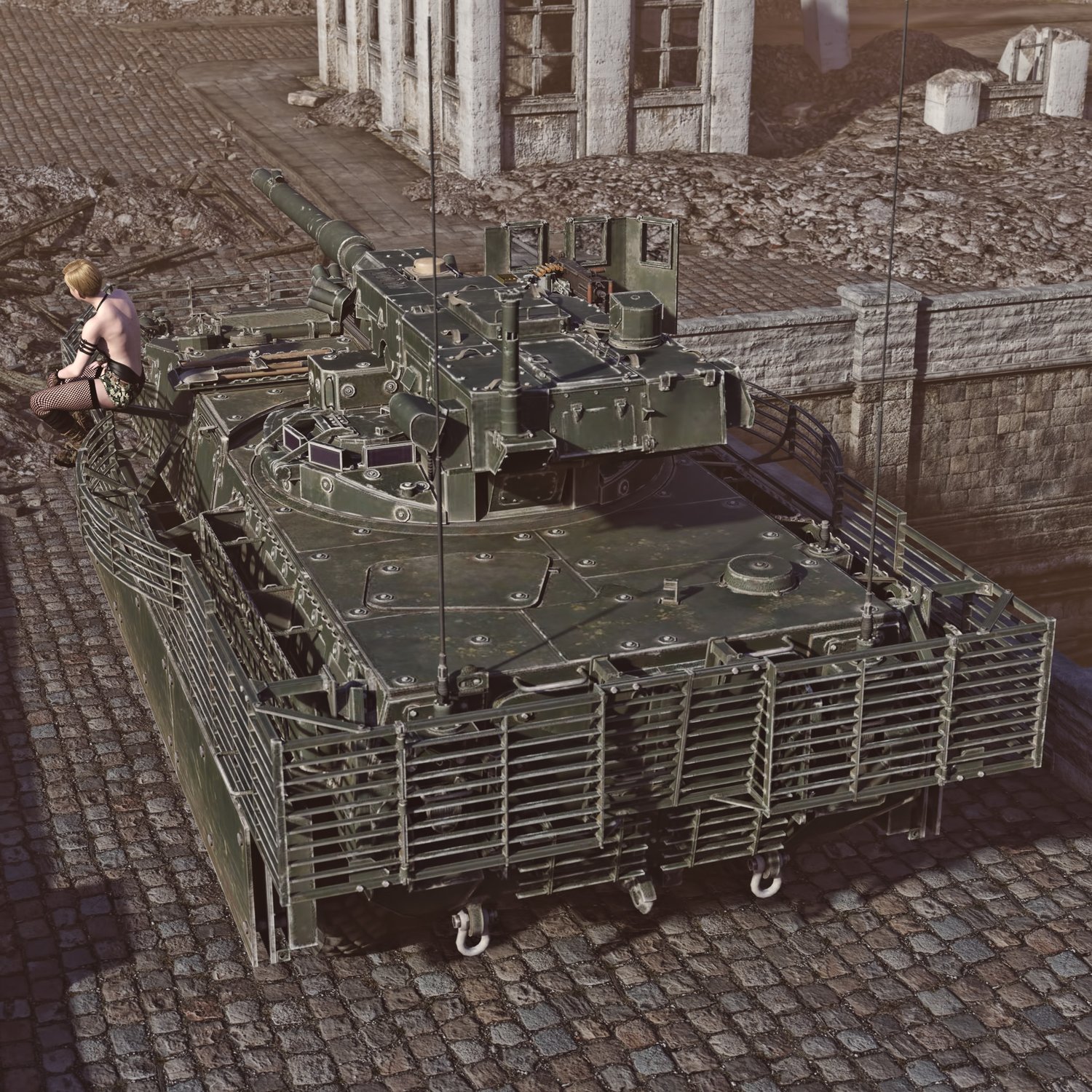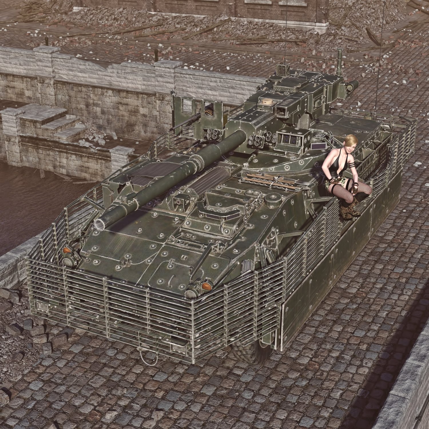 A cool mobile gun system of the Stryker family of combat vehicles. Designed for heavy artillery support on a mobile platform. Hatches also can be open for dismount and easy access. The turret is mainly a gun, and is rigged for realistic pictures. Machinegun is also rigged. Good for transportation and for quick artillery support. You can also take some friends with you- it has some space. Has internals and rear space for troops, but it's very limited. Turret and gun also rigged for good positioning. The prop is converted and rigged for DAZ.