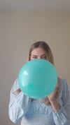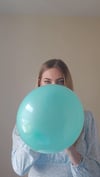 Conchita gives it another try with this blue balloon. The pop really startles her! The second clip is an outtake of the first failed attempt.