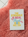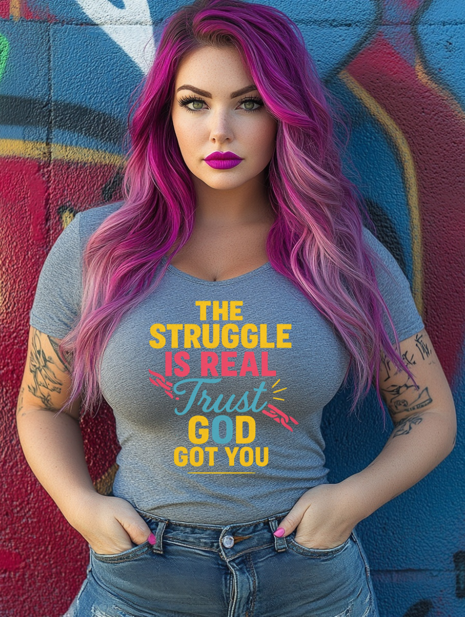 Crafted with bold, eye-catching neon-style lettering in vibrant yellow, red, blue, and soft pinks, this design radiates hope and strength. Whether you’re walking through a storm or celebrating a breakthrough, this message reminds everyone that God’s got your back—always.