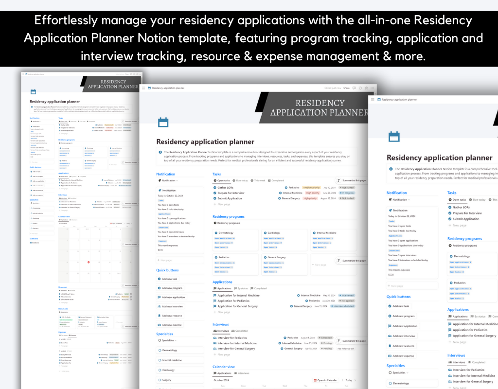 The Residency Application Planner Notion template is designed to simplify and streamline the residency application process for medical professionals.