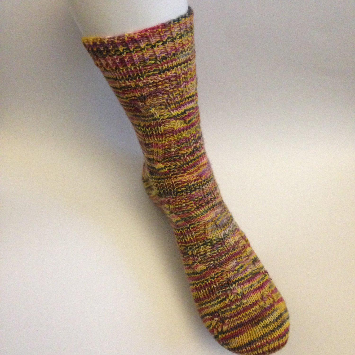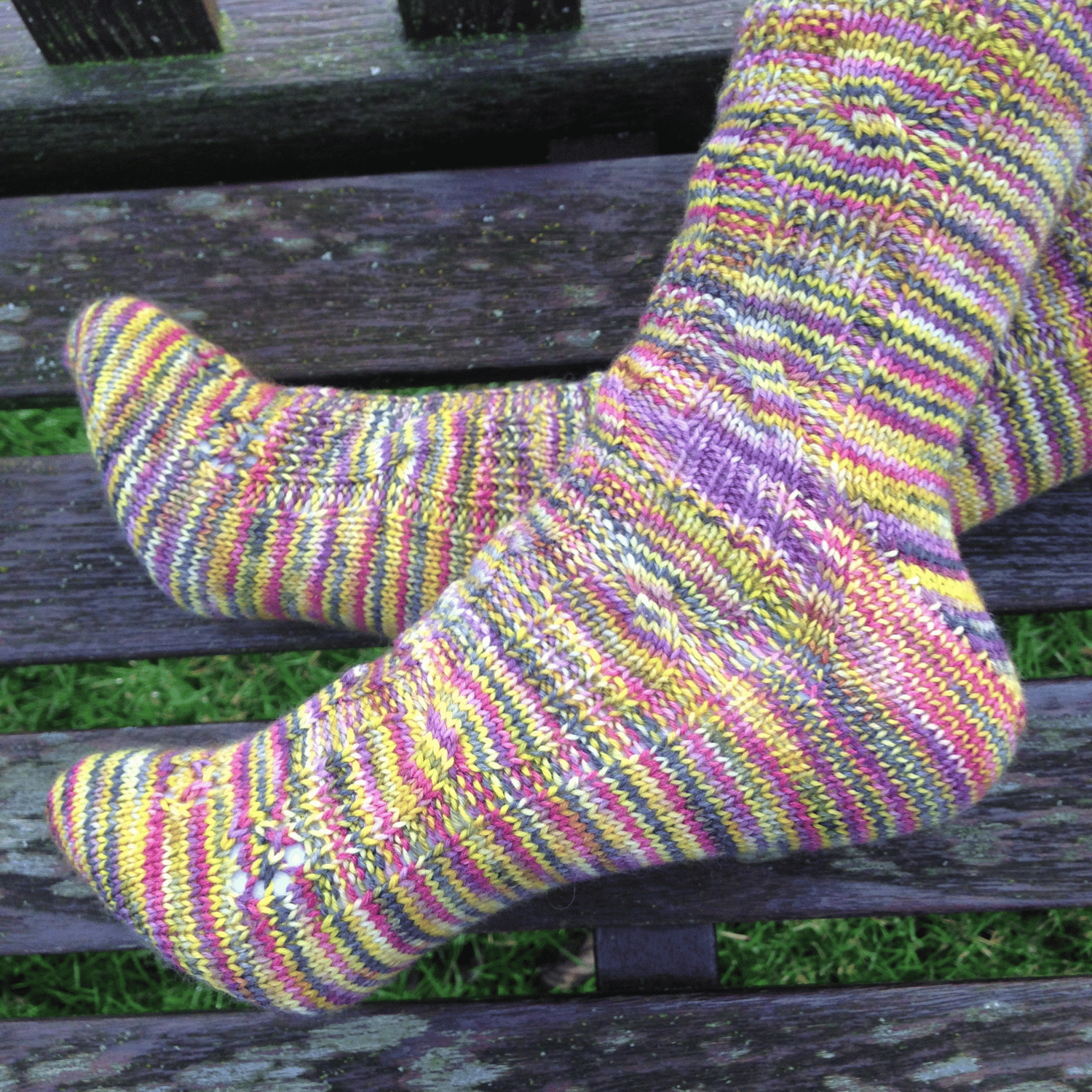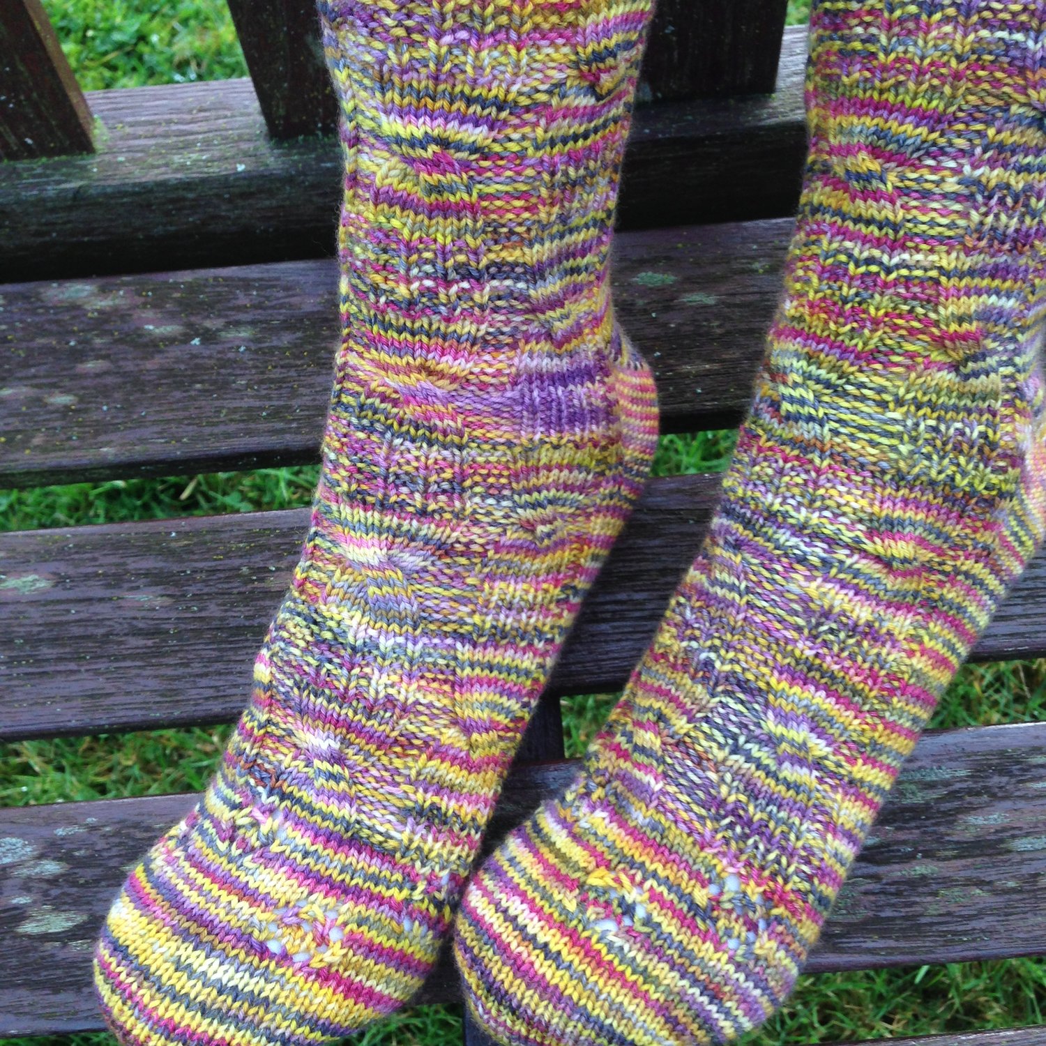 These socks are knit using the magic loop method (although the purchaser could easily adapt it for two circulars or double points).