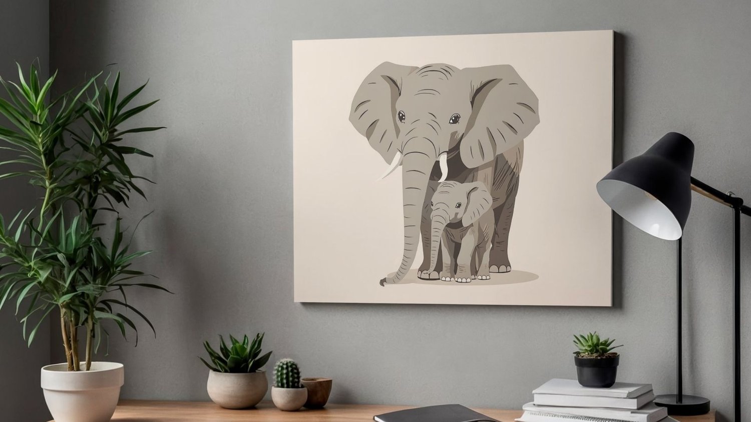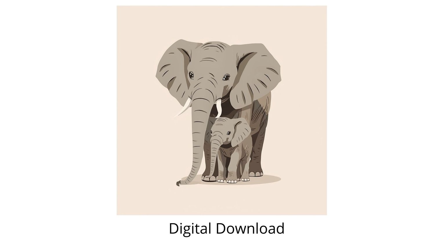 Minimalist Elephant with Calf Wall Art Printable – Modern Animal Art