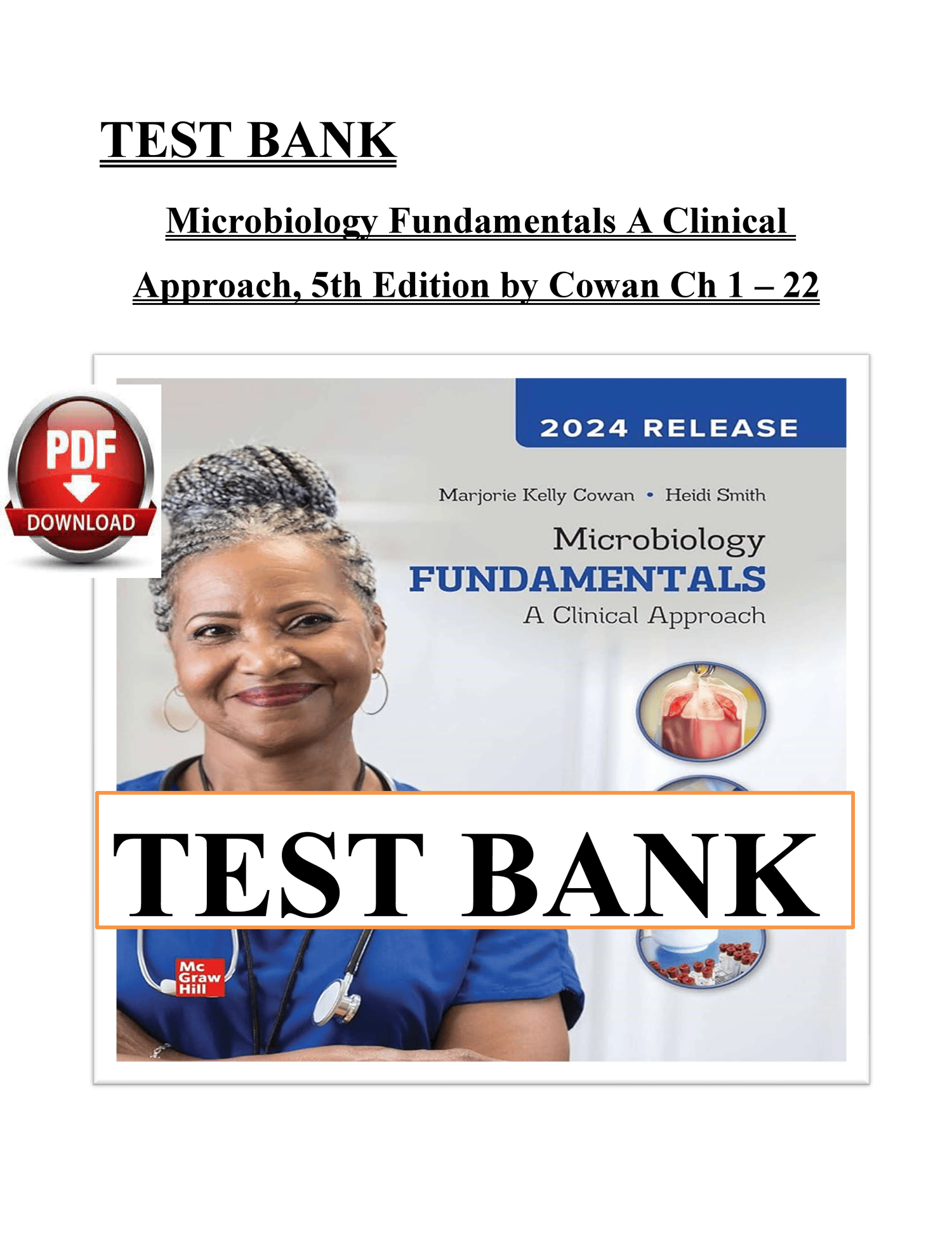 Access the complete Test Bank for Microbiology Fundamentals: A Clinical Approach, 2024 Release by Marjorie Kelly Cowan and Heidi Smith. This resource is designed to help students and instructors master clinical microbiology concepts with chapter-based questions that align directly with the textbook.