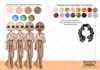 three different skin tones, three eye colours and 16 hair colours