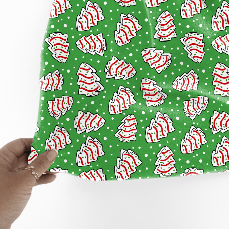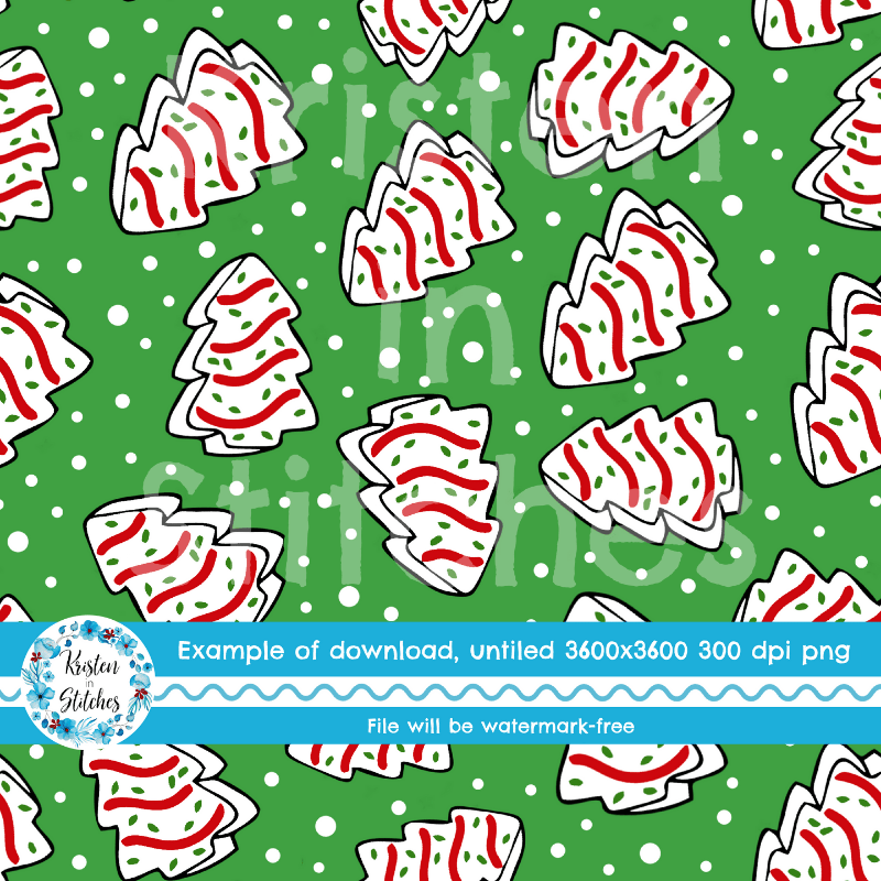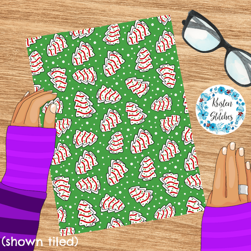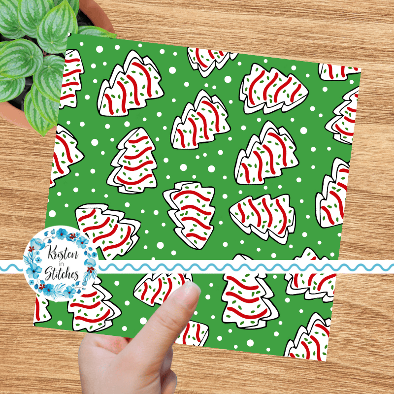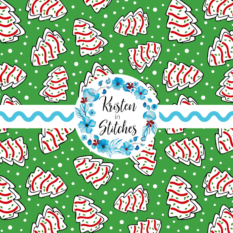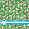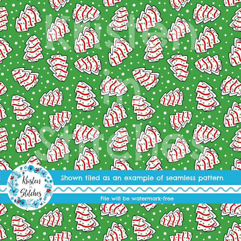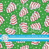 Christmas Tree Snack Cakes Seamless Pattern on Green