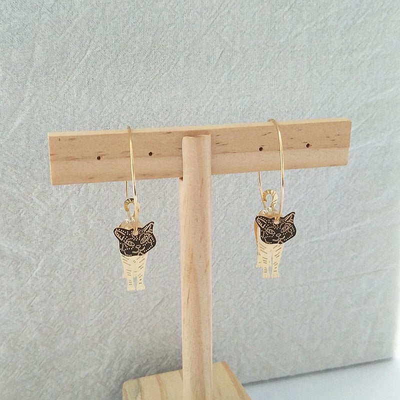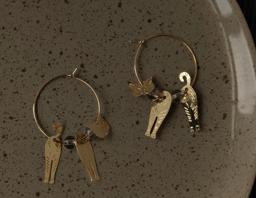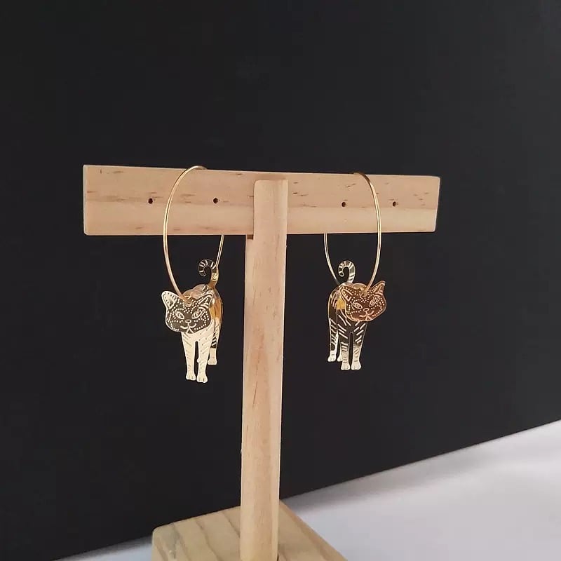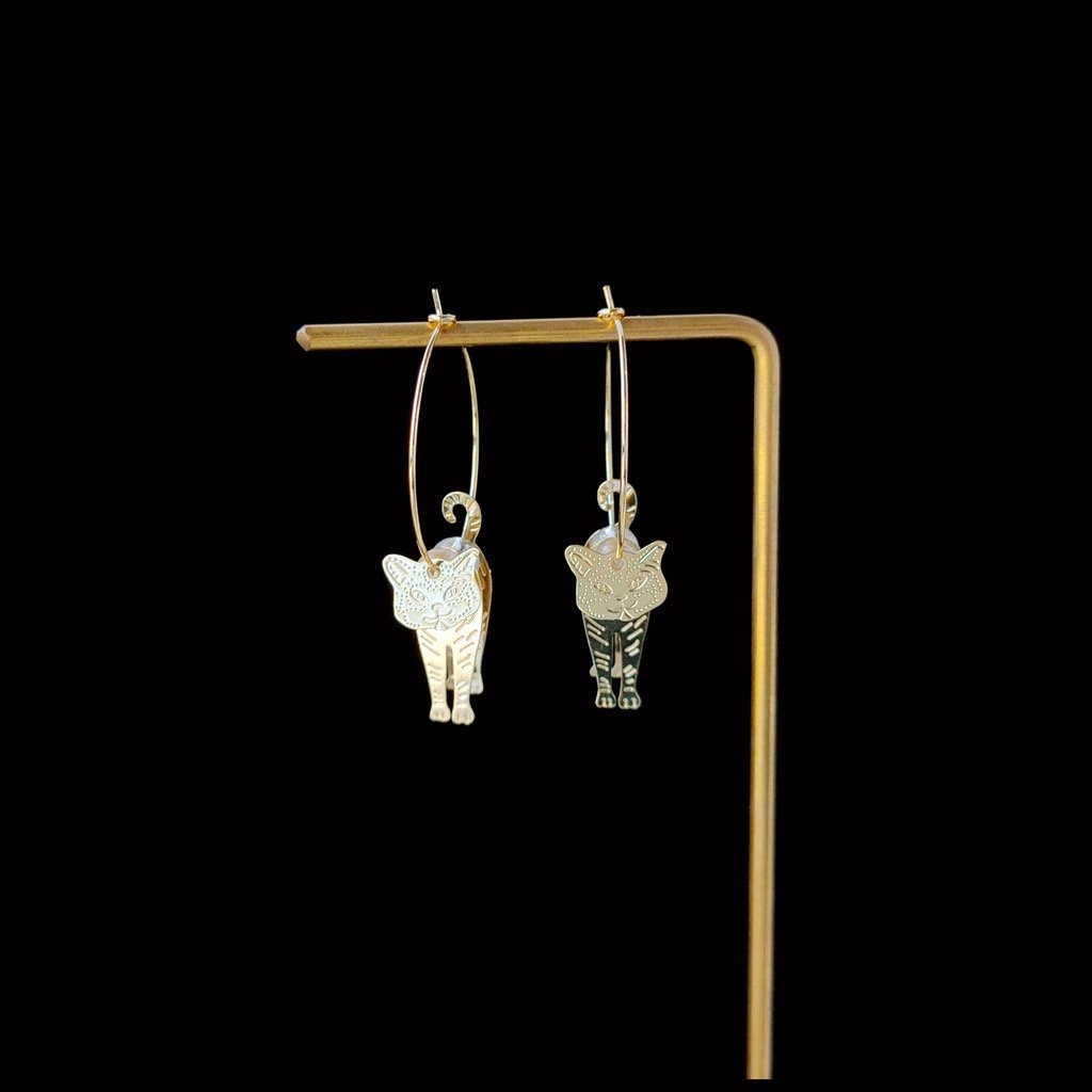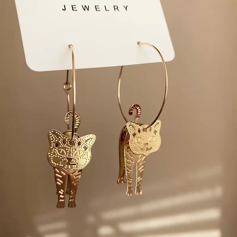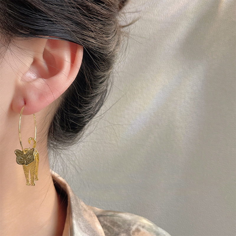 Designer creative 3D cat 56 gold-plated 925 silver needle earring hoops