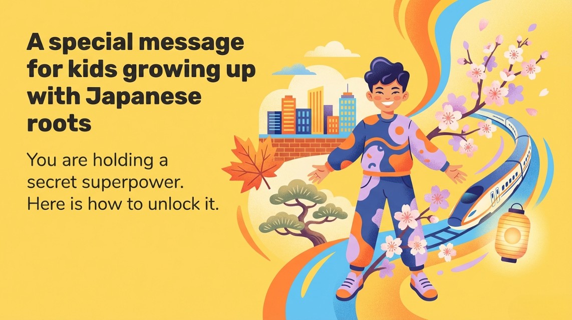 実例13:カナダ日系3世の若者の、自身のアイデンティティと言語学習についてのリアル体験談|子供に読ませたい|英語|ストーリーボード|(全15ページ)PDF download|約500円(ほぼワンコイン)