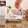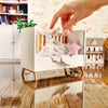 This miniature crib can be converted into a miniature toddler bed in just one step!