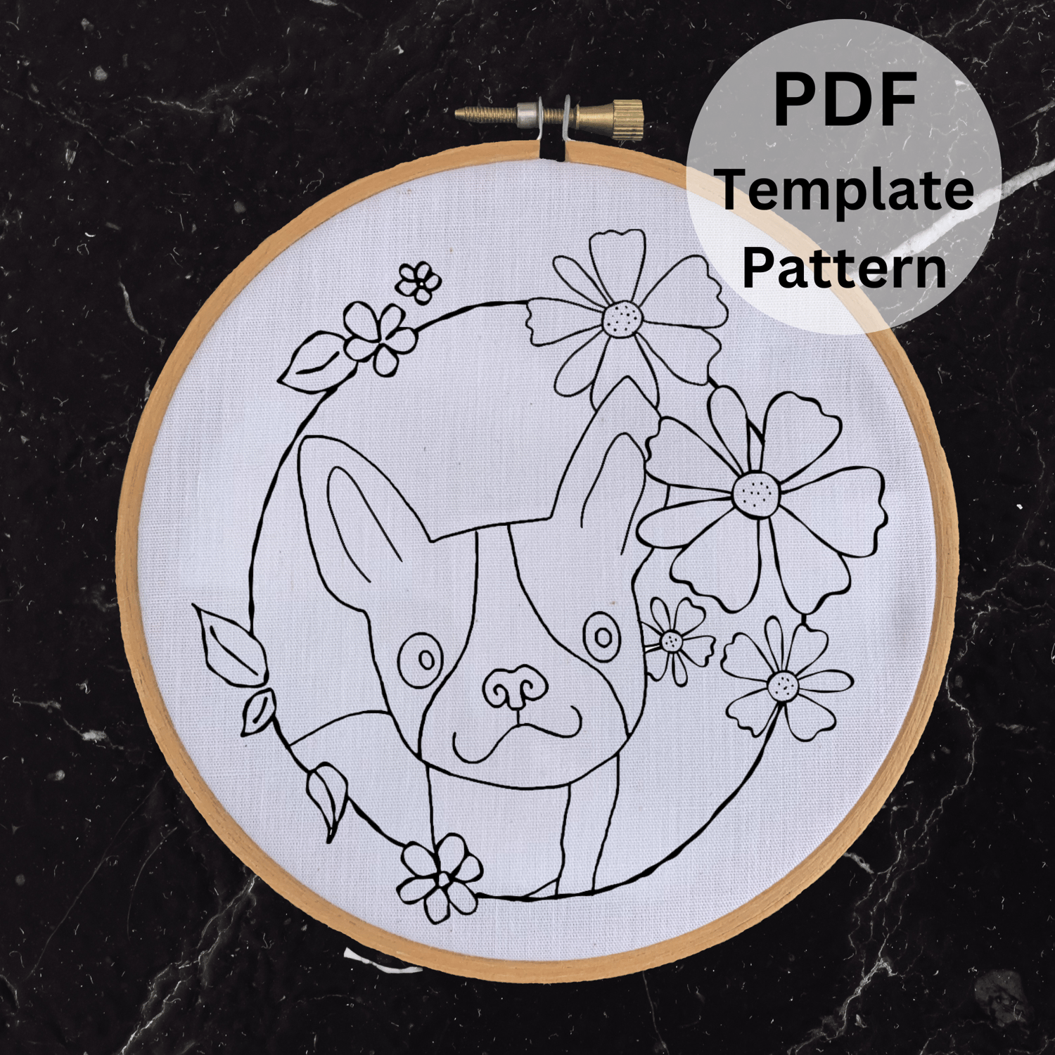 Frenchie & Floral Embroidery Pattern 6-Different Sizes - Stitch Your Own Custom Design - Instant Download