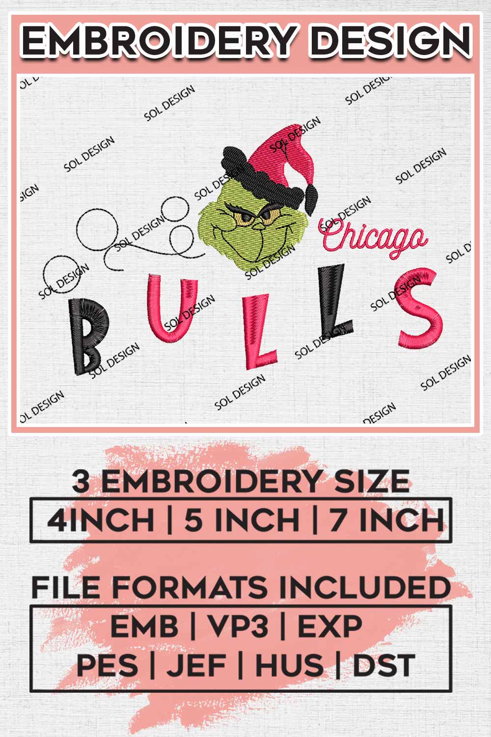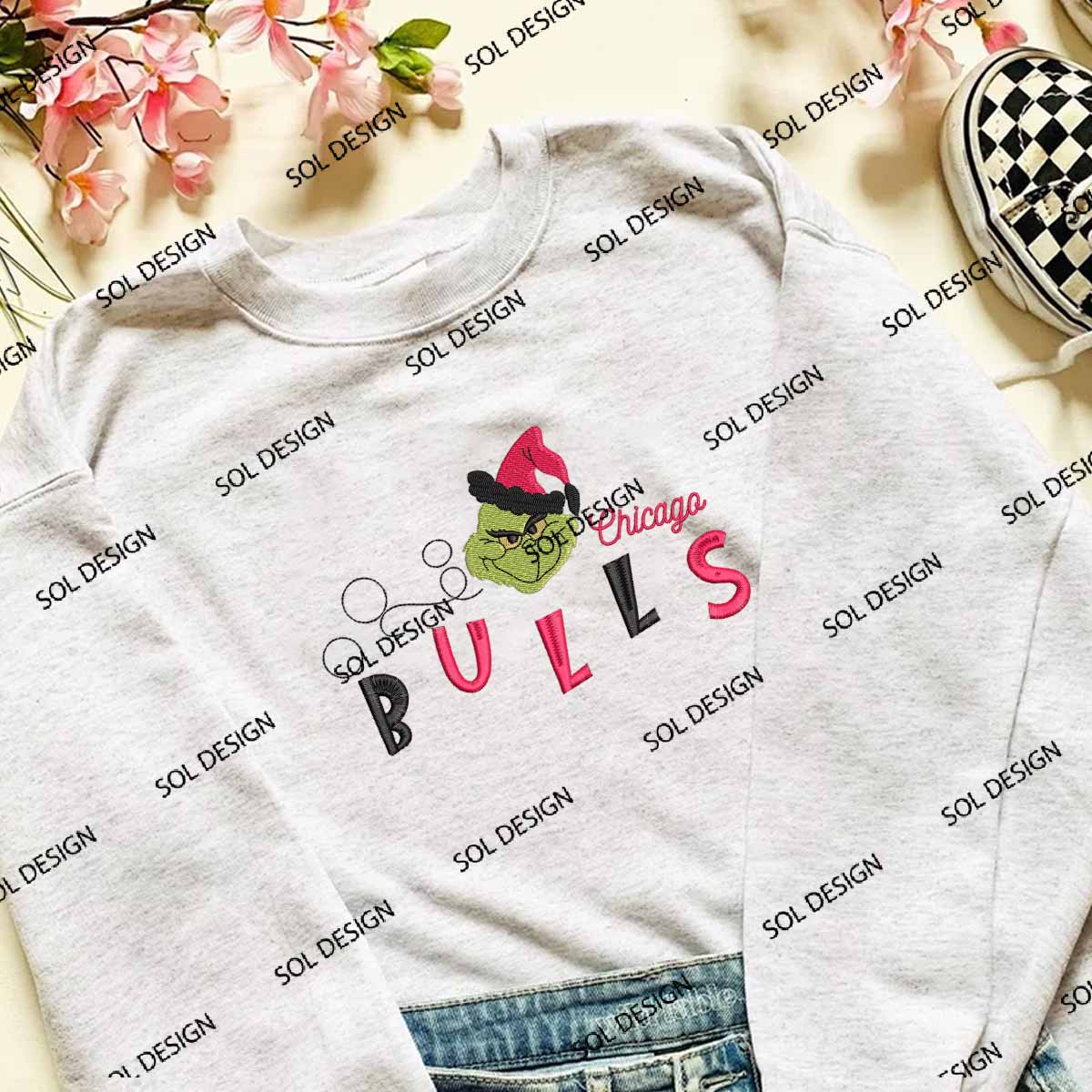 Christmas Grinch Face x Chicago Bulls NBA Basketball Team Embroidery Designs, Grinch Embroidery Files, NBA Bulls Basketball Team Logo Embroidery, Merry Christmas Machine Embroidery Design, Digital Download