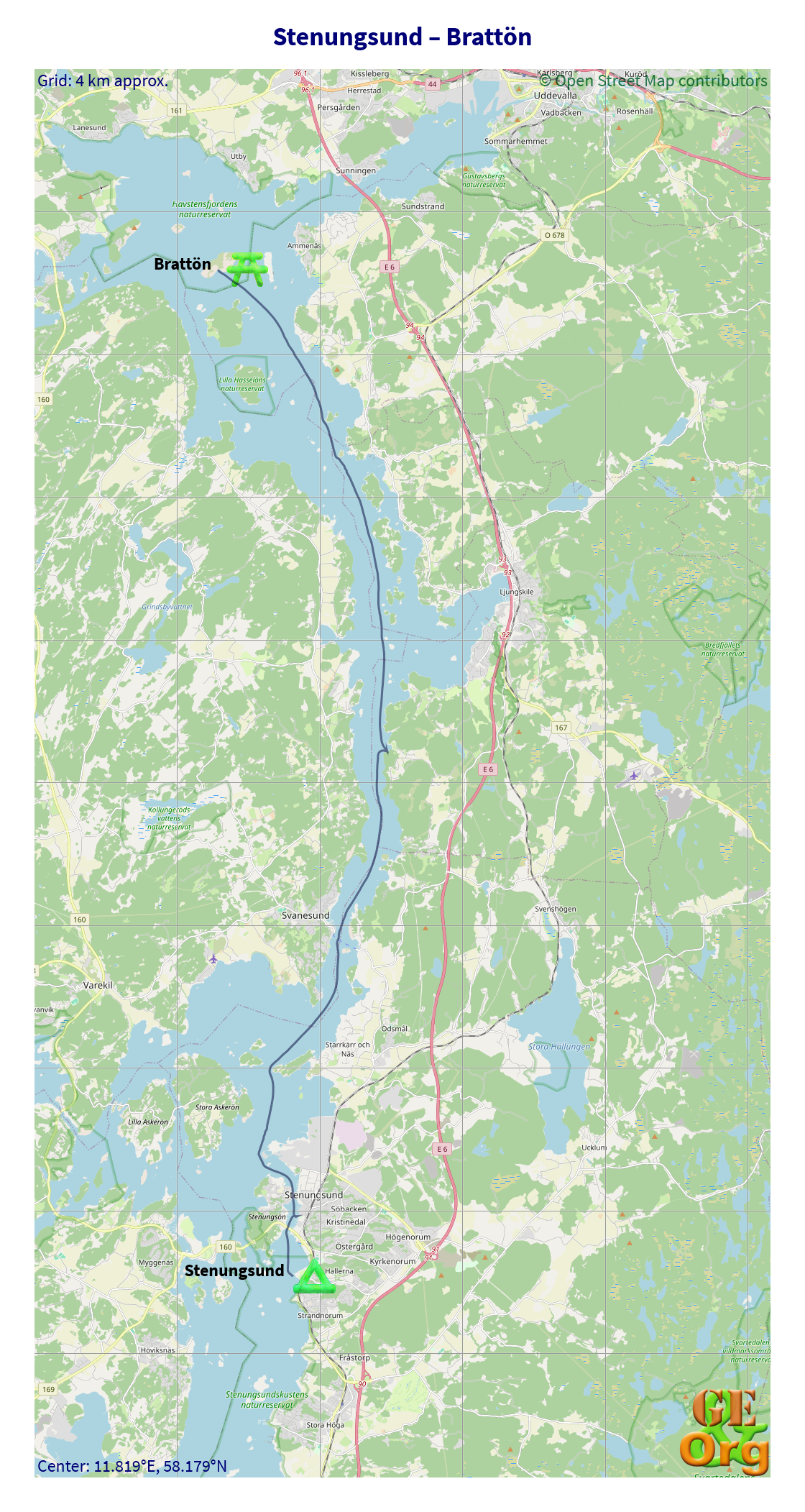 Paddling tour Stenungsund to Brattön, Sweden, one GPX file, one GeoJSON file, one OpenStreetMap.