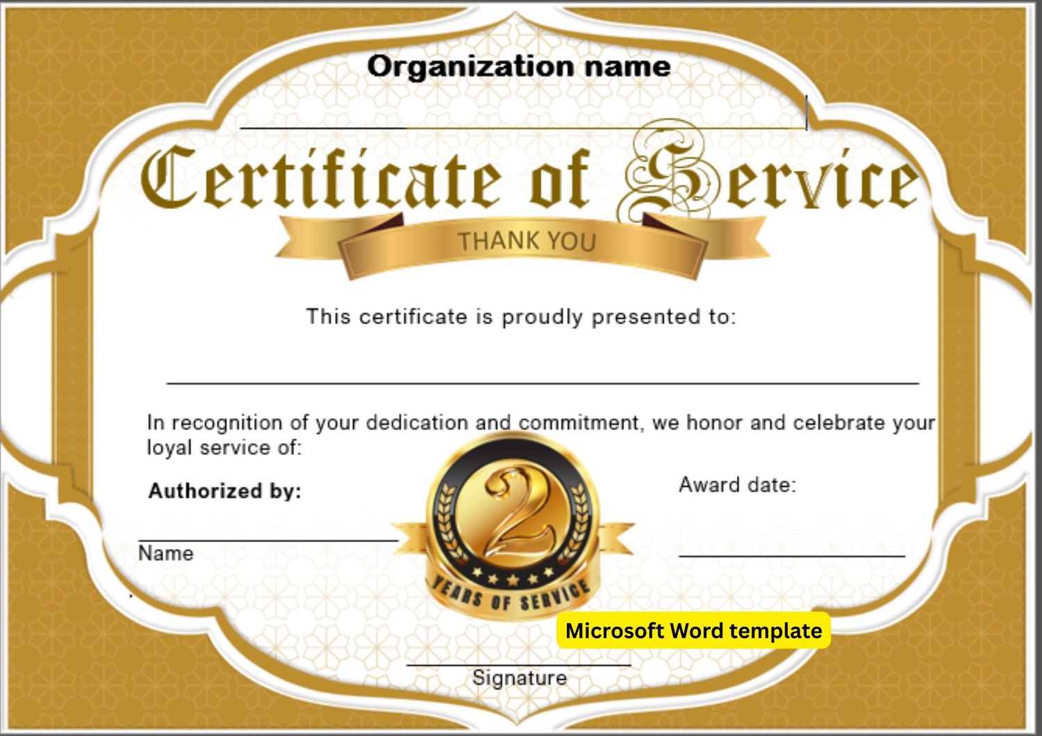 02 Years of Service - Editable Microsoft Word template with logo tailored with number of years G202L020047