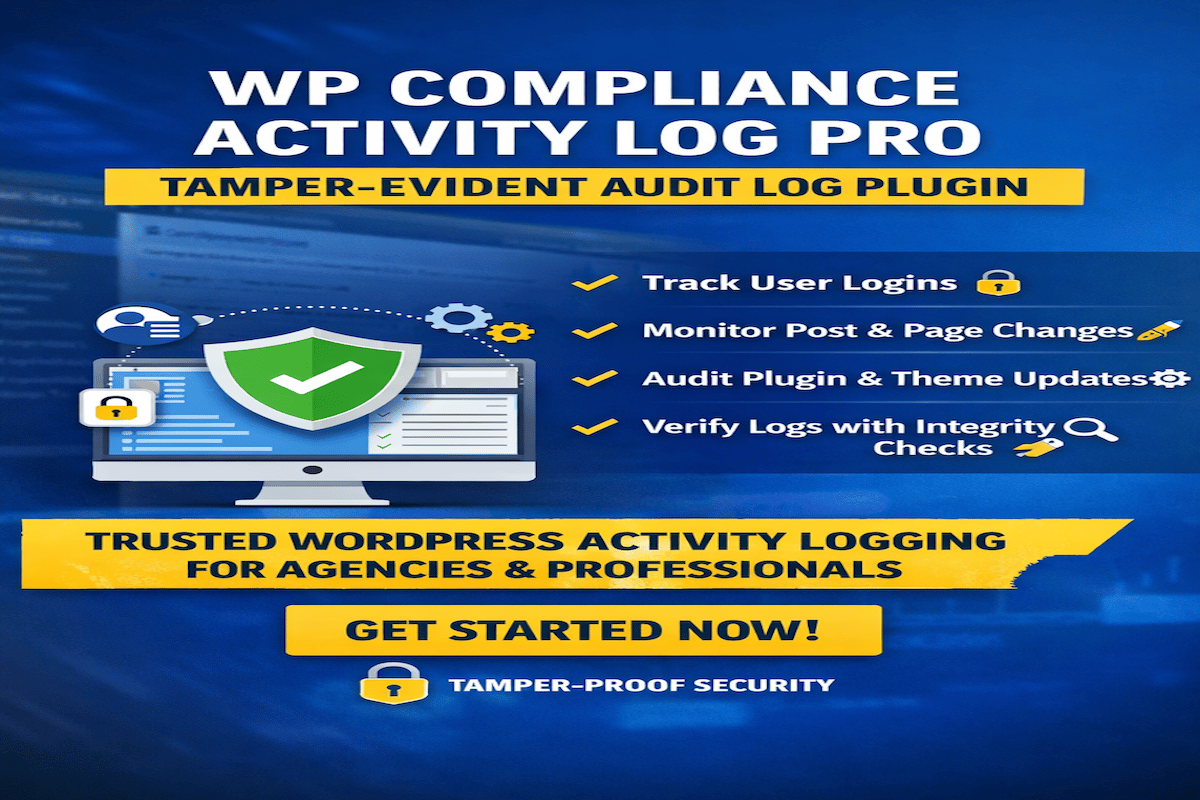 WP Compliance Activity Log Pro is a professional WordPress auditing and activity logging plugin designed for agencies, businesses and security-conscious site owners who need reliable, defensible records of what happens inside their WordPress site.