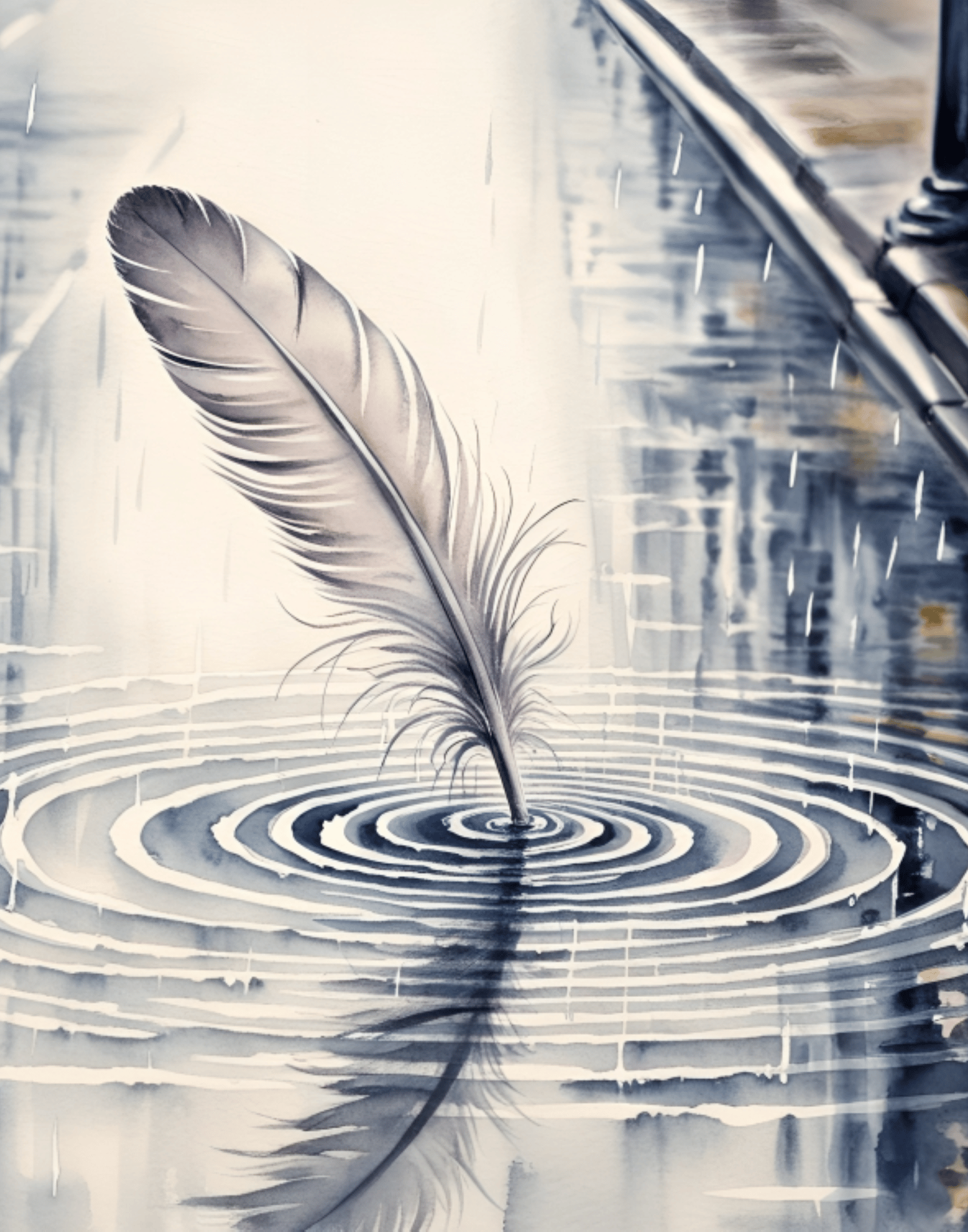 Monsoon Beauty, Single Feather on Street Water Art, Feather Art, Serene Art, Street Art, Water Wave Painting, Feather Dropping Water Painting, Small Effort painting.
