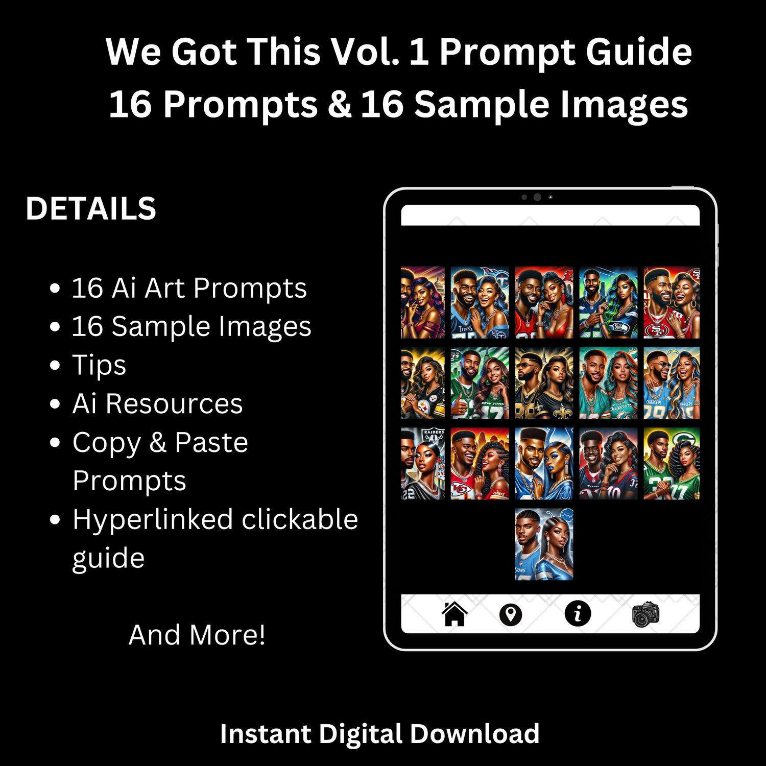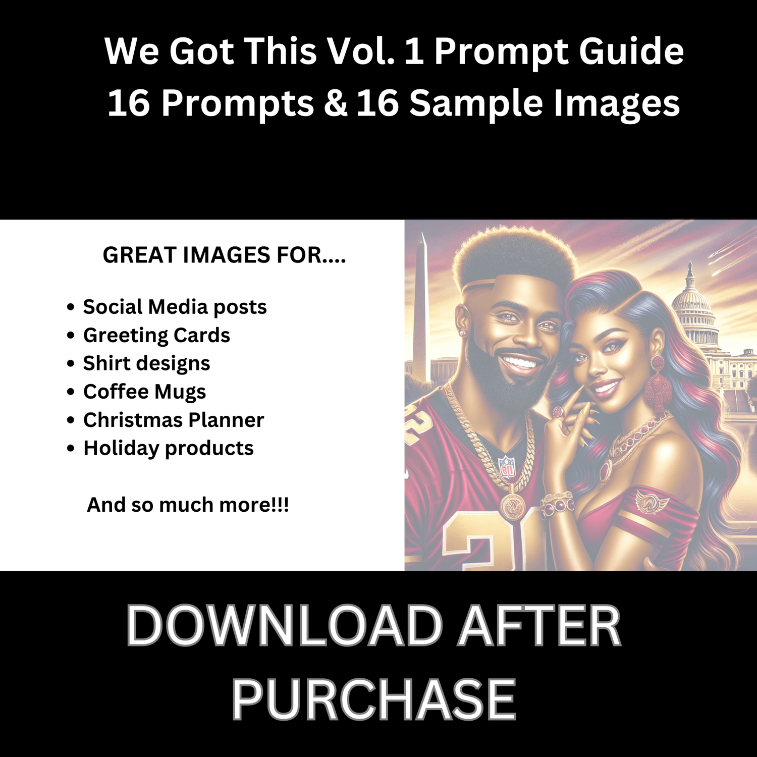 Ai Art Guide - 'We Got This' | Football | Sports | Gpt Prompts | Black Man | Black Woman | Sports Fan | for Chat GPT and Dall E 3