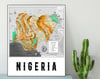 Nigeria map poster digital printable Topography Nigeria map print West Africa map Africa home decor Nigeria gifts for him Nigeria poster print Modern office wall map nursery map decor