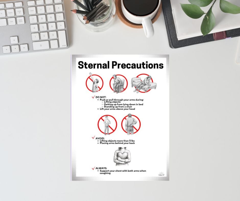 Here is a PDF to provide to your patients as a visual to promote carry over and understanding of sternal precautions.