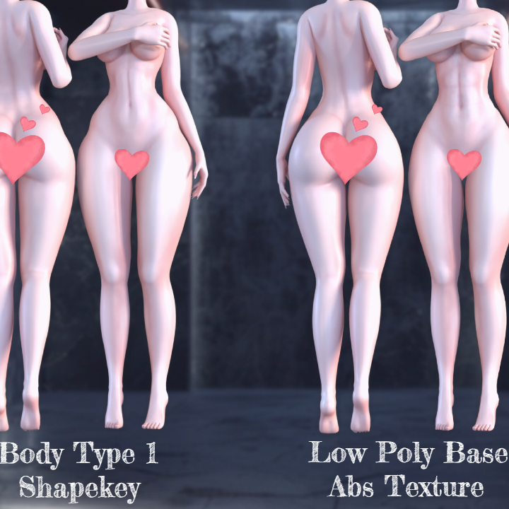 24 shapekeys ;bigger back,smaller back,breast size type 1,heeled feet,p. type 1,p. type 2,p.open type 1,p. open type 2,m fingernails, l fingernails,butt resize,hips resize,thight resize,waist resize,abs,breast resize,breast down,body type 1,calf resize,knee resize,ankle resize,ankle type 1,armpit resize,thin