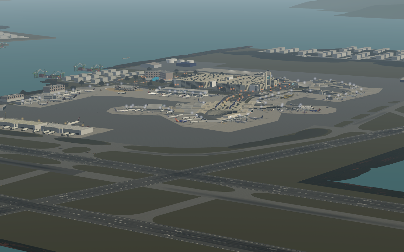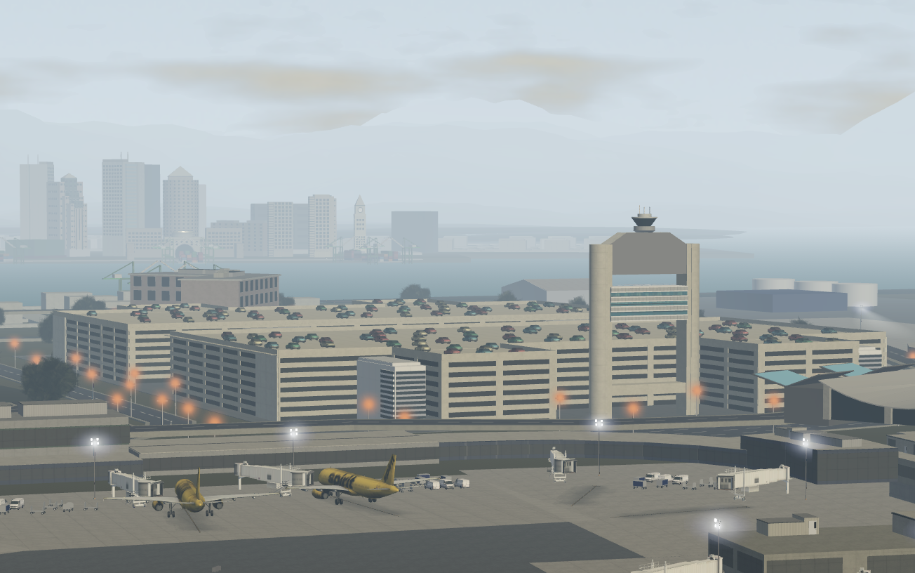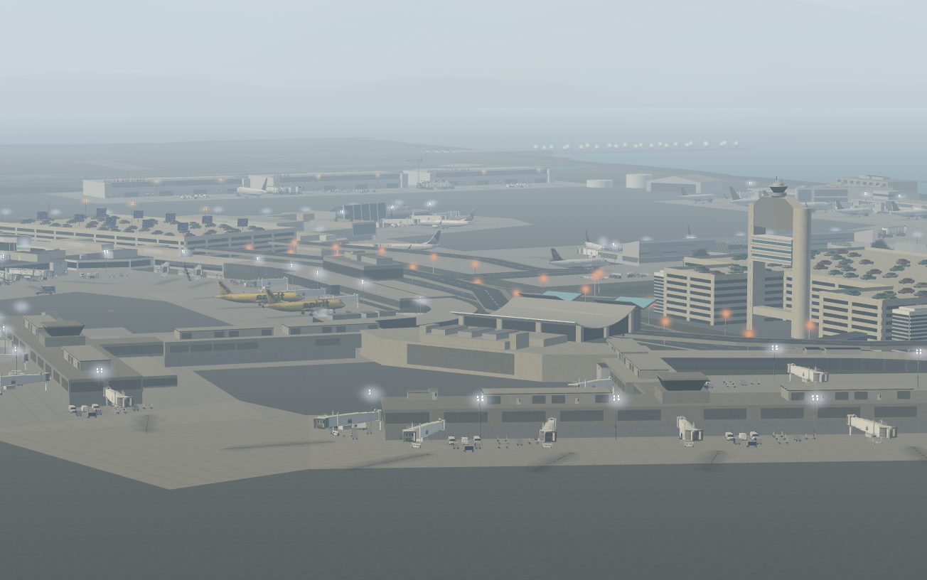-Immersive scenery reflective of the airport's surrounding areas including downtown Boston.