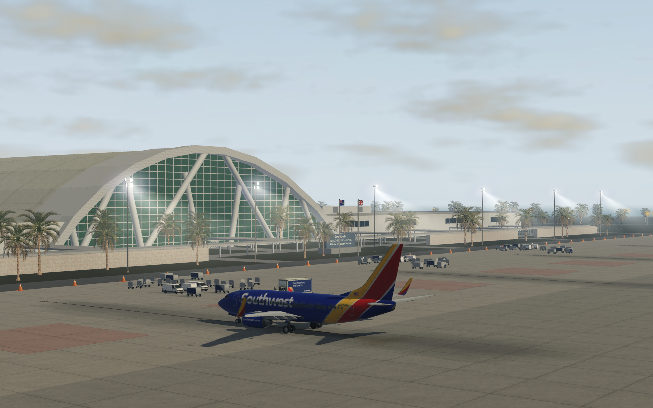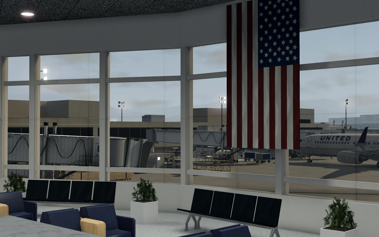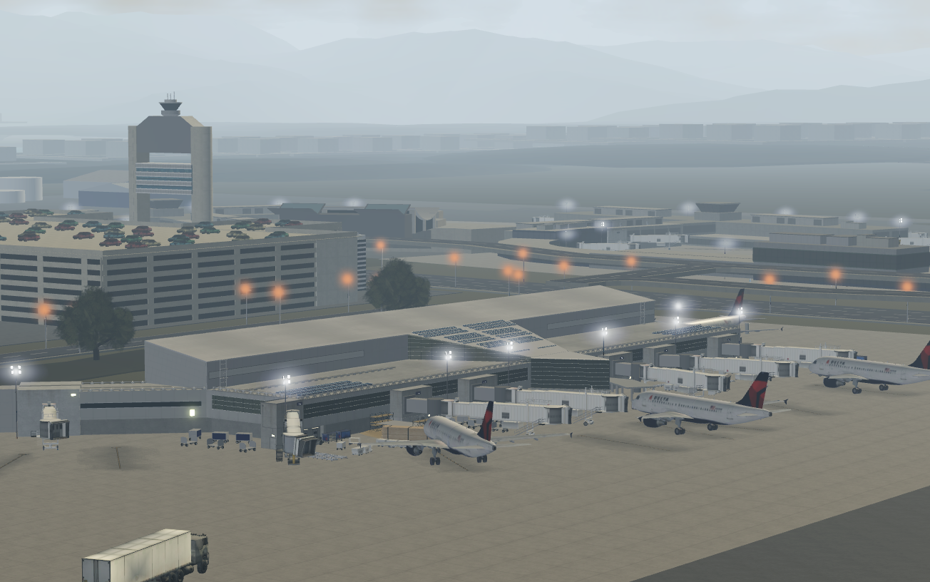 -Immersive scenery reflective of the airport's surrounding areas including downtown Boston.