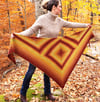 Don’t let the math reference fool you - Gradient Geometry is a simple, triangular-shaped shawl consisting of garter and stockinette stitch. The shawl is worked from the center out, in-the-round to form a diamond shape, which is subsequently joined to two triangles using the three-needle bind off method. The border is then worked using the live stitches that were previously placed on hold.