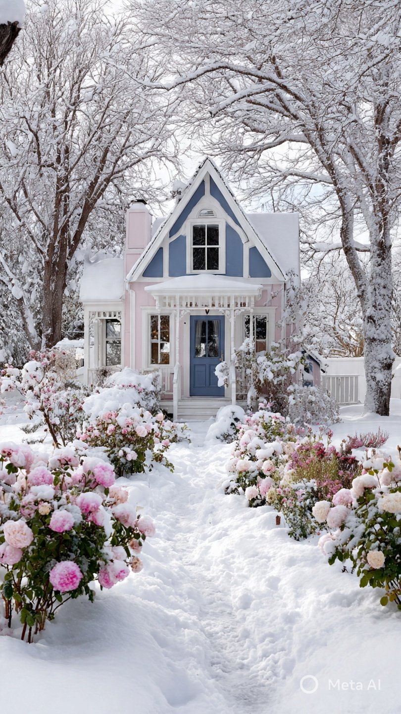 - Romantic cottage exteriors with climbing roses and weathered shutters
