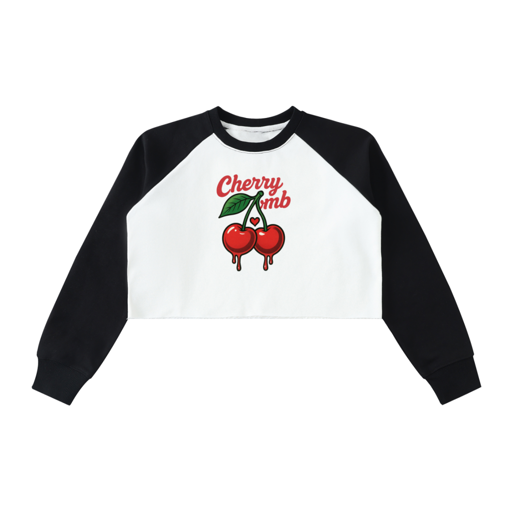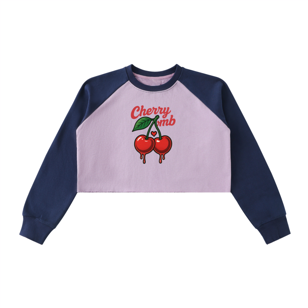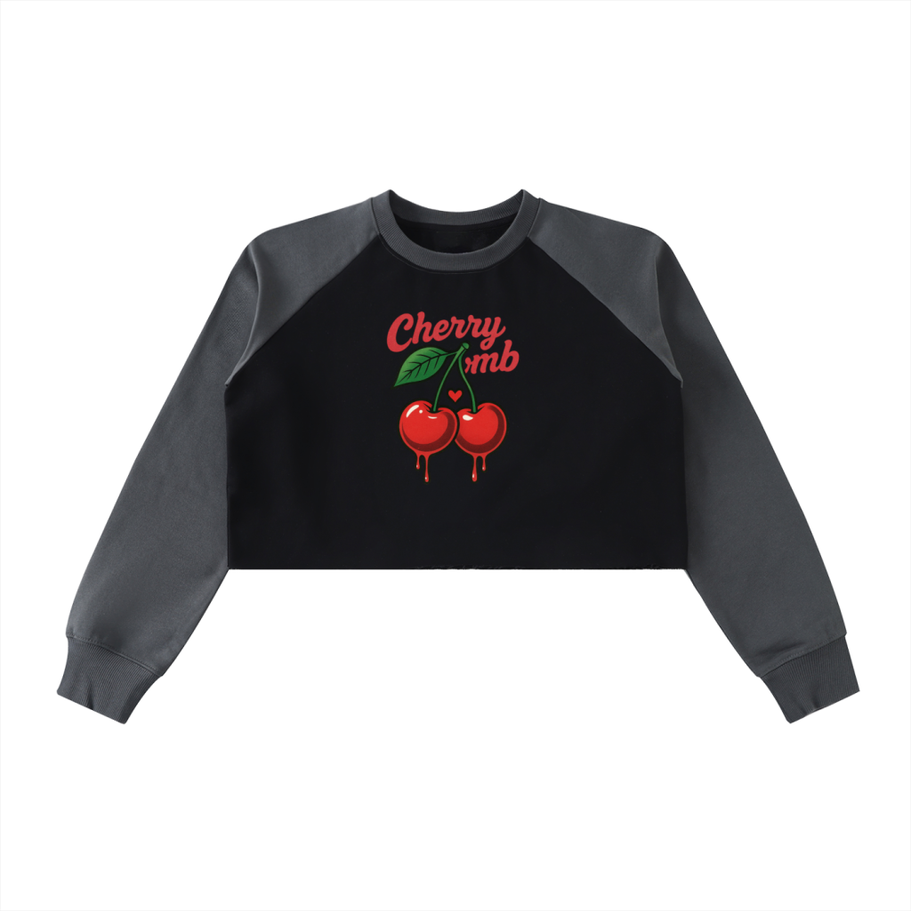 Cherries Raw-Hem Color-Block Raglan Crop Sweatshirt