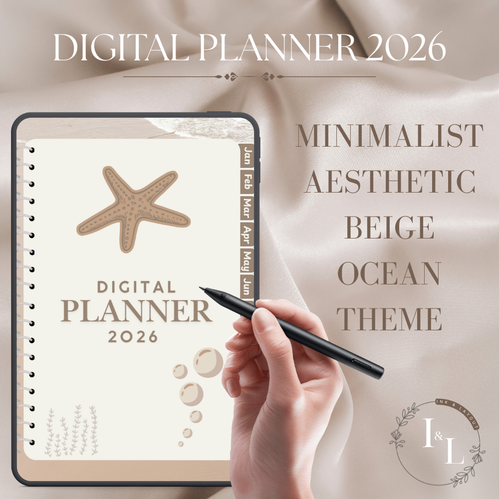 This Digital Planner 2026 uses a soft beige ocean theme.