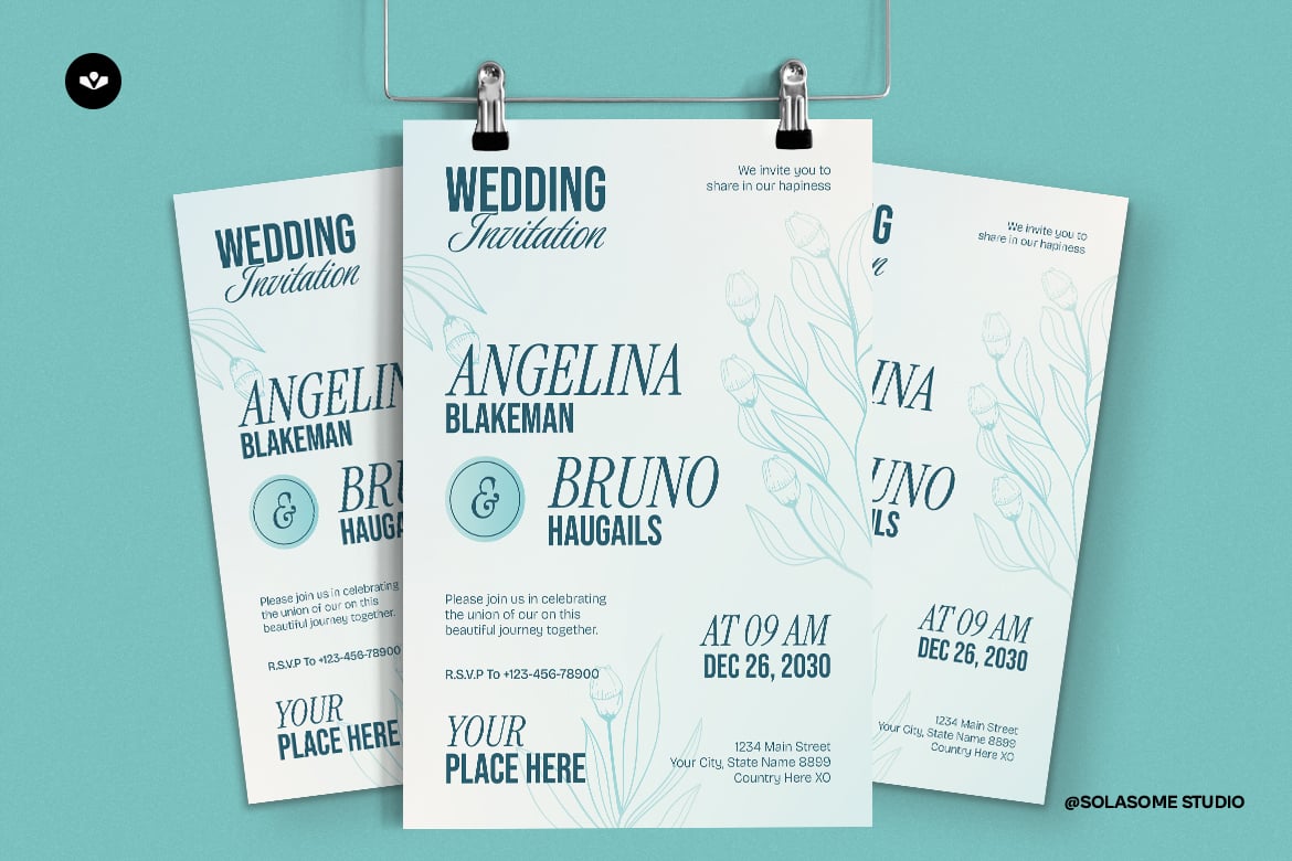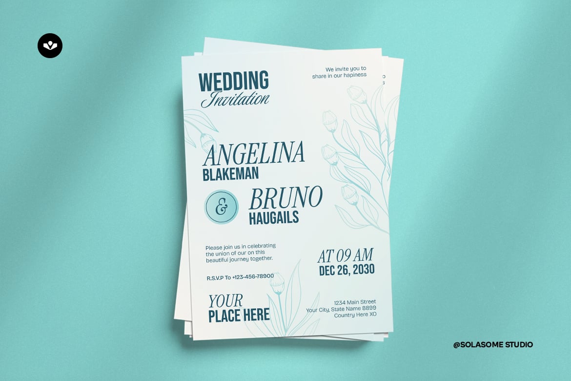 This is an invitation design template - also be used for design various project design invitation. It's perfect for couple seeking sophisticated invitation solutions. This design will make your special day unforgettable and memorable event.