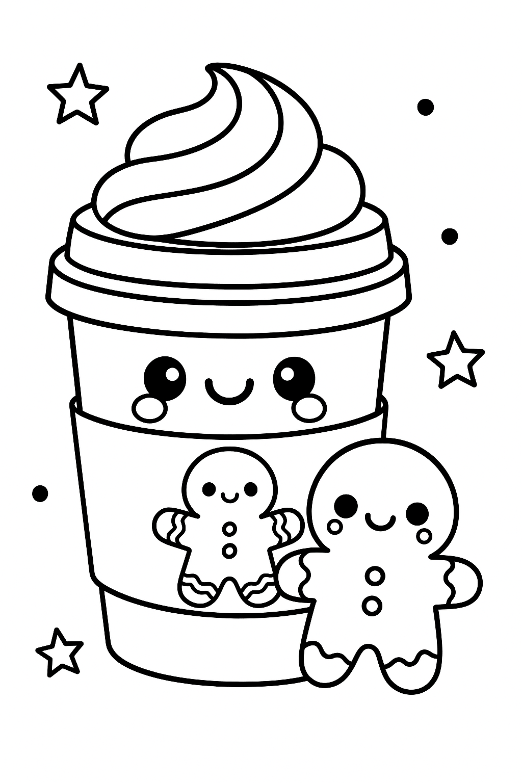 - 5 festive coloring pages (hot cocoa mugs, marshmallow snowmen, eggnog glasses, Christmas donuts, and a gingerbread latte)