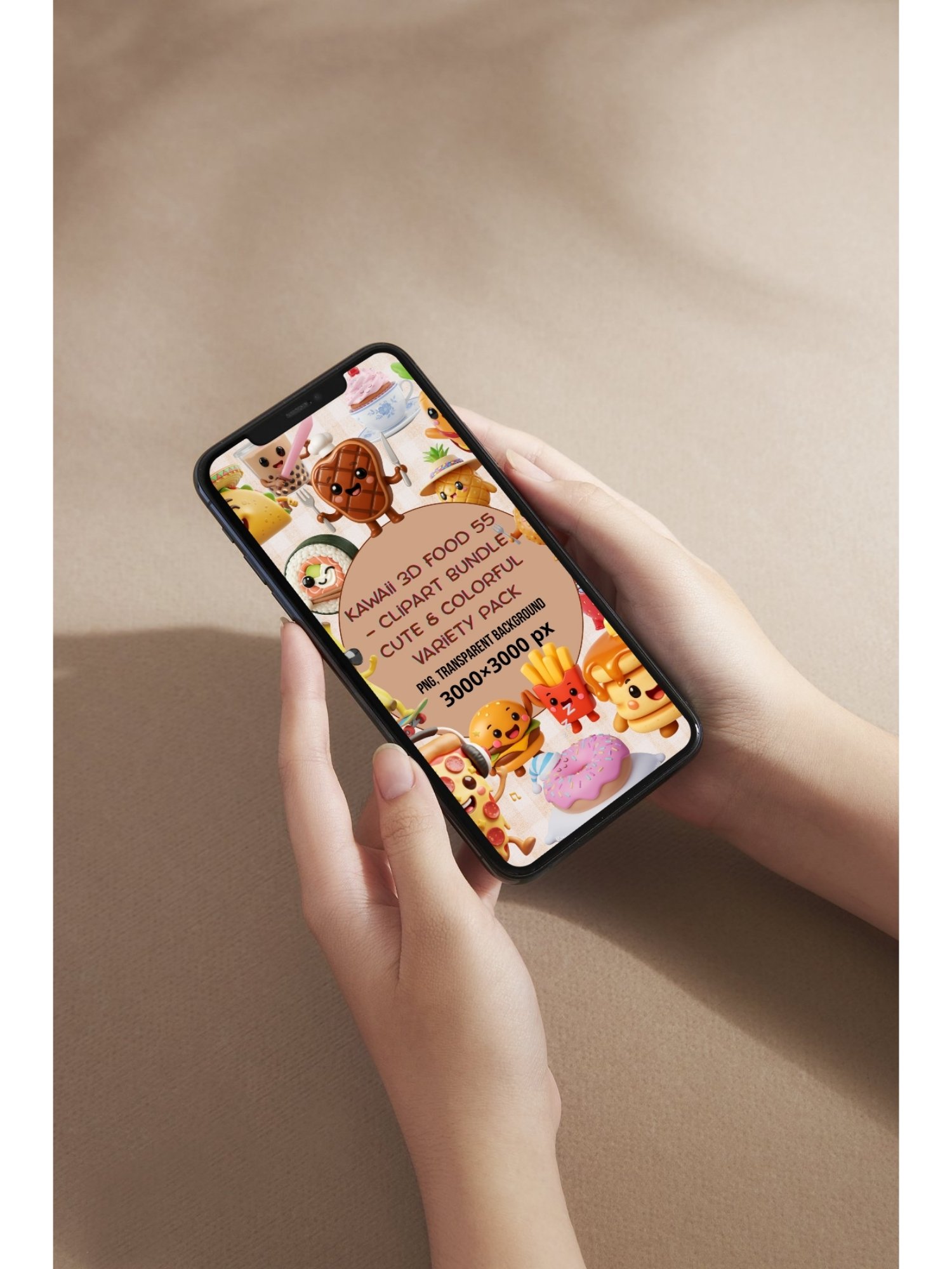 Bring your designs to life with this adorable collection of 55 unique kawaii 3D food cliparts! 🍔🍕🍩 From juicy burgers, crispy fries, and sushi rolls to sweet donuts, bubble tea, and ice cream – this pack is filled with a fun variety of foods turned into cute, smiling characters that will instantly grab attention.