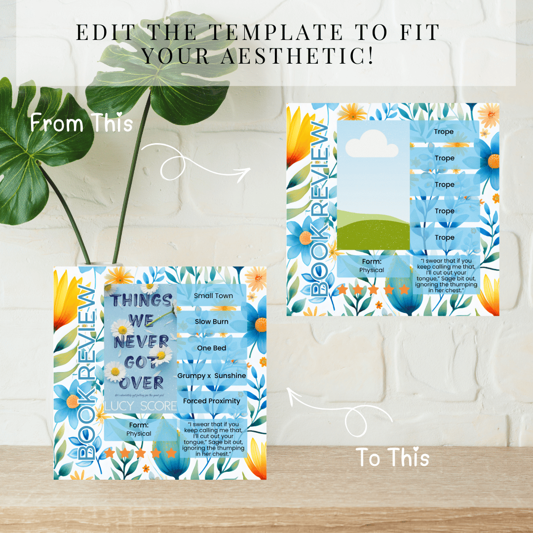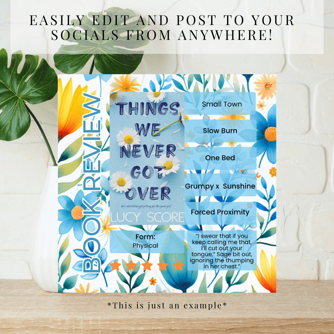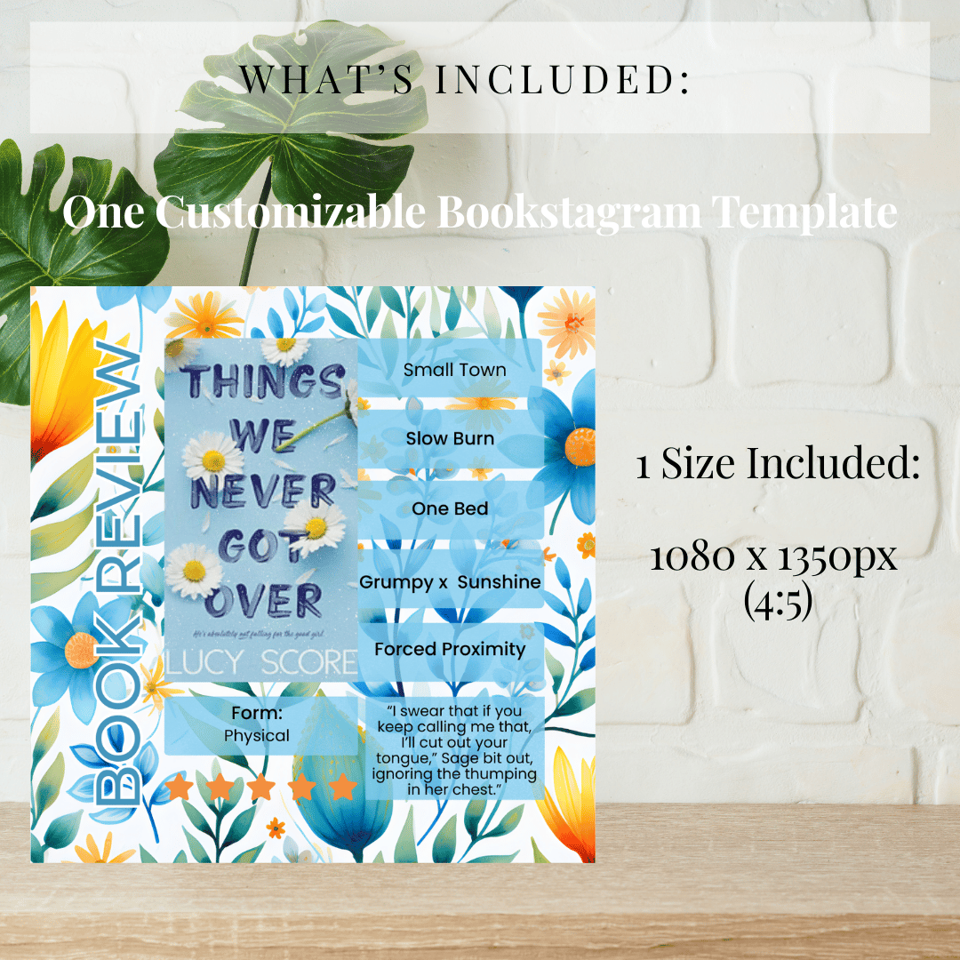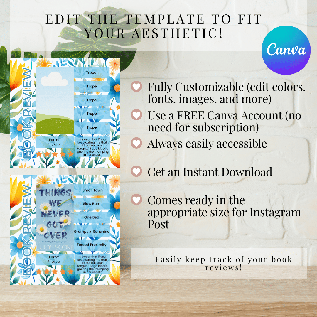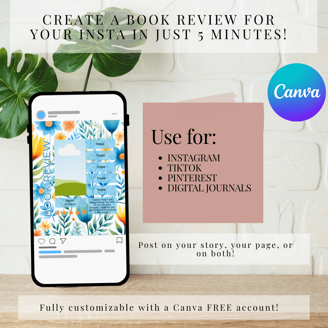 Add a soft, elegant touch to your Bookstagram with this floral Instagram template designed to help you create beautiful, eye-catching book review posts. Perfect for showcasing your favorite reads while maintaining a delicate, feminine, and cohesive aesthetic.