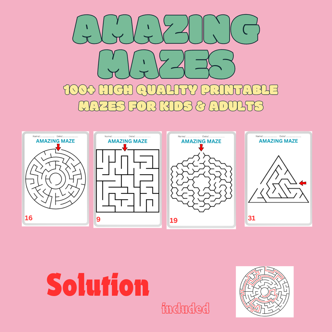 100 amazing mazes for kids and adults, high quality, printable.