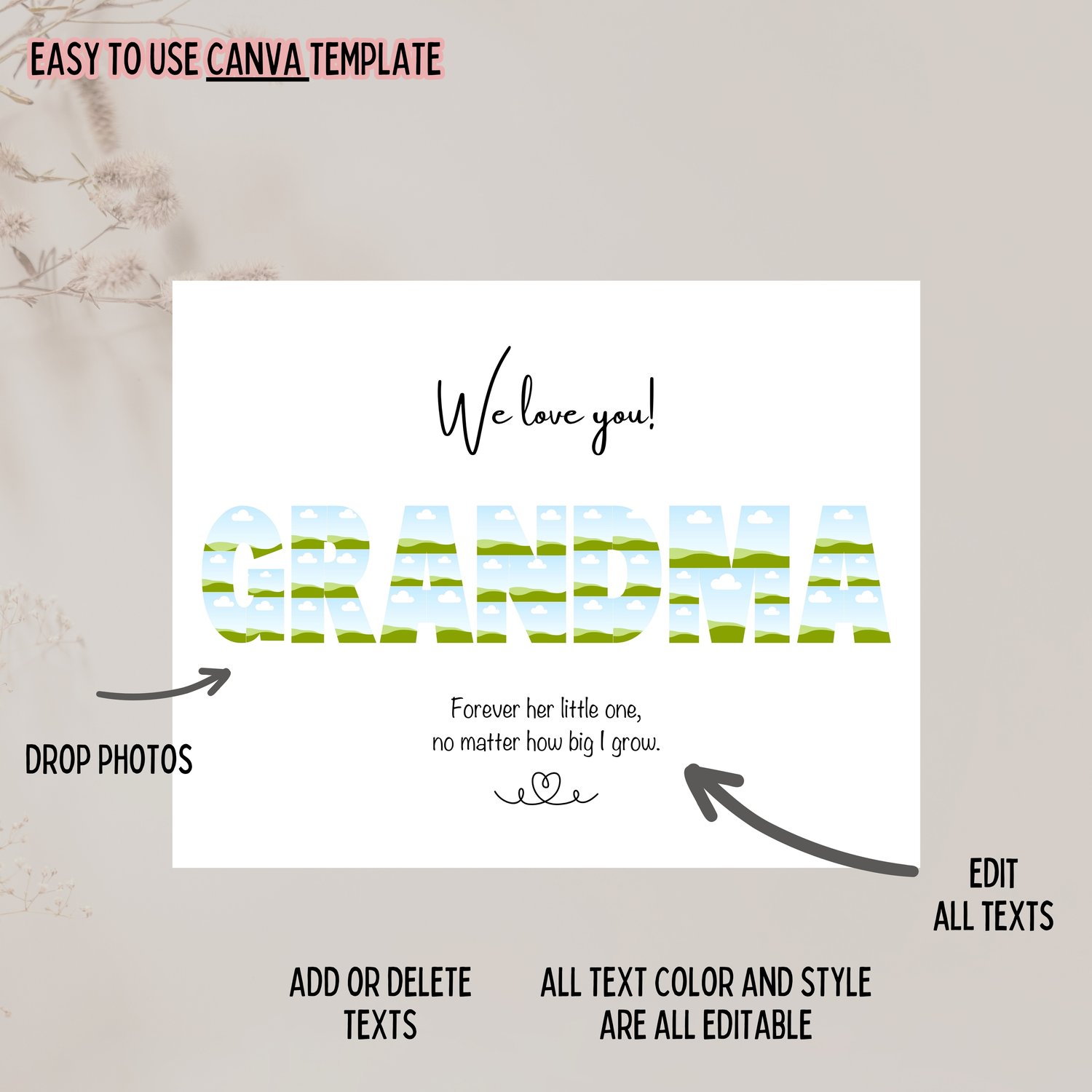 Custom Grandma Photo Gift Collage Template, Personalized Grandma, Mother's Day Gift for Grandma, Gift for Lola