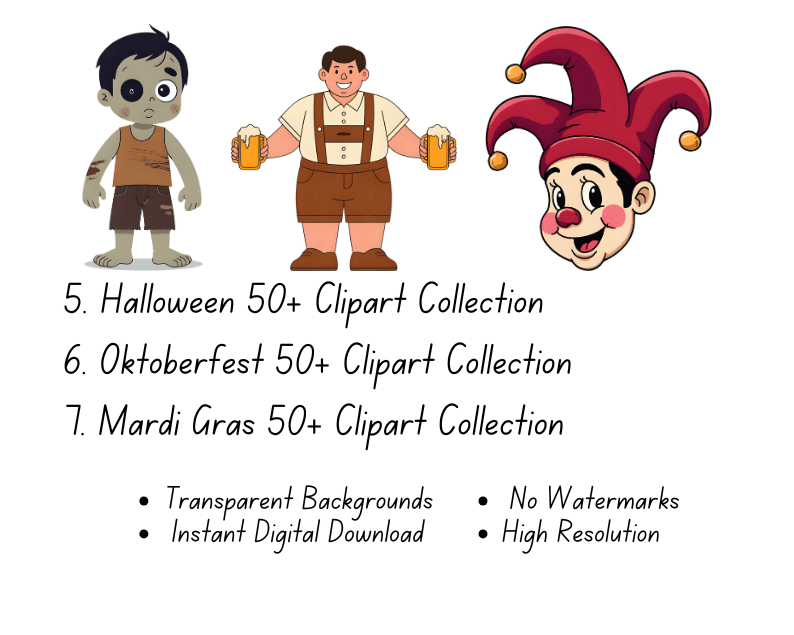 Whether you're designing invitations, social media posts, worksheets, stickers, or party decor, these cliparts are versatile, fun, and professionally crafted to suit a wide range of festive themes.