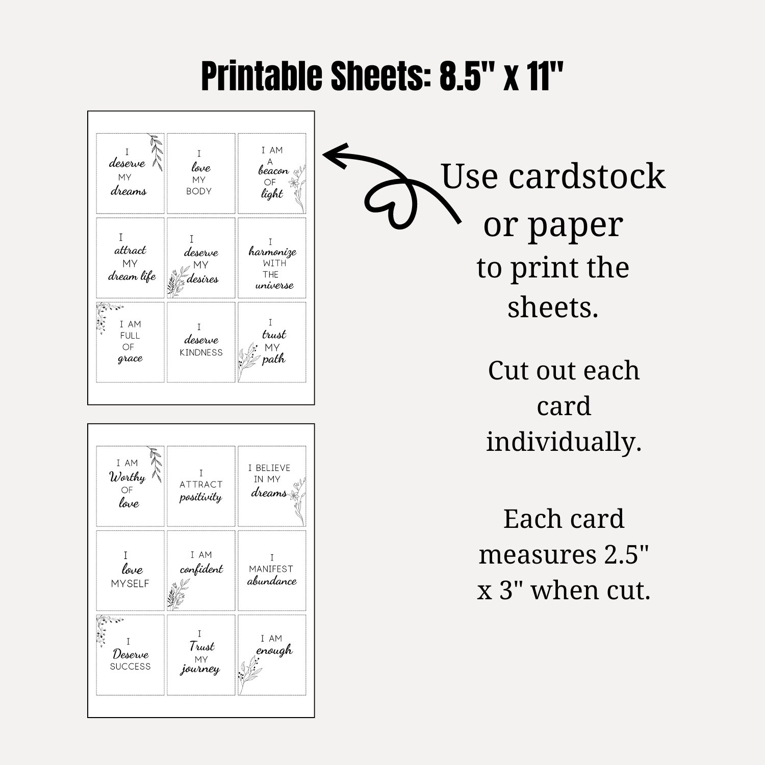 Empowerment and Self-Love Affirmation Card Set, Vision Board Printables, Law of Attraction Cards, Manifestation Kit, Self-Care Printables, DIGITAL