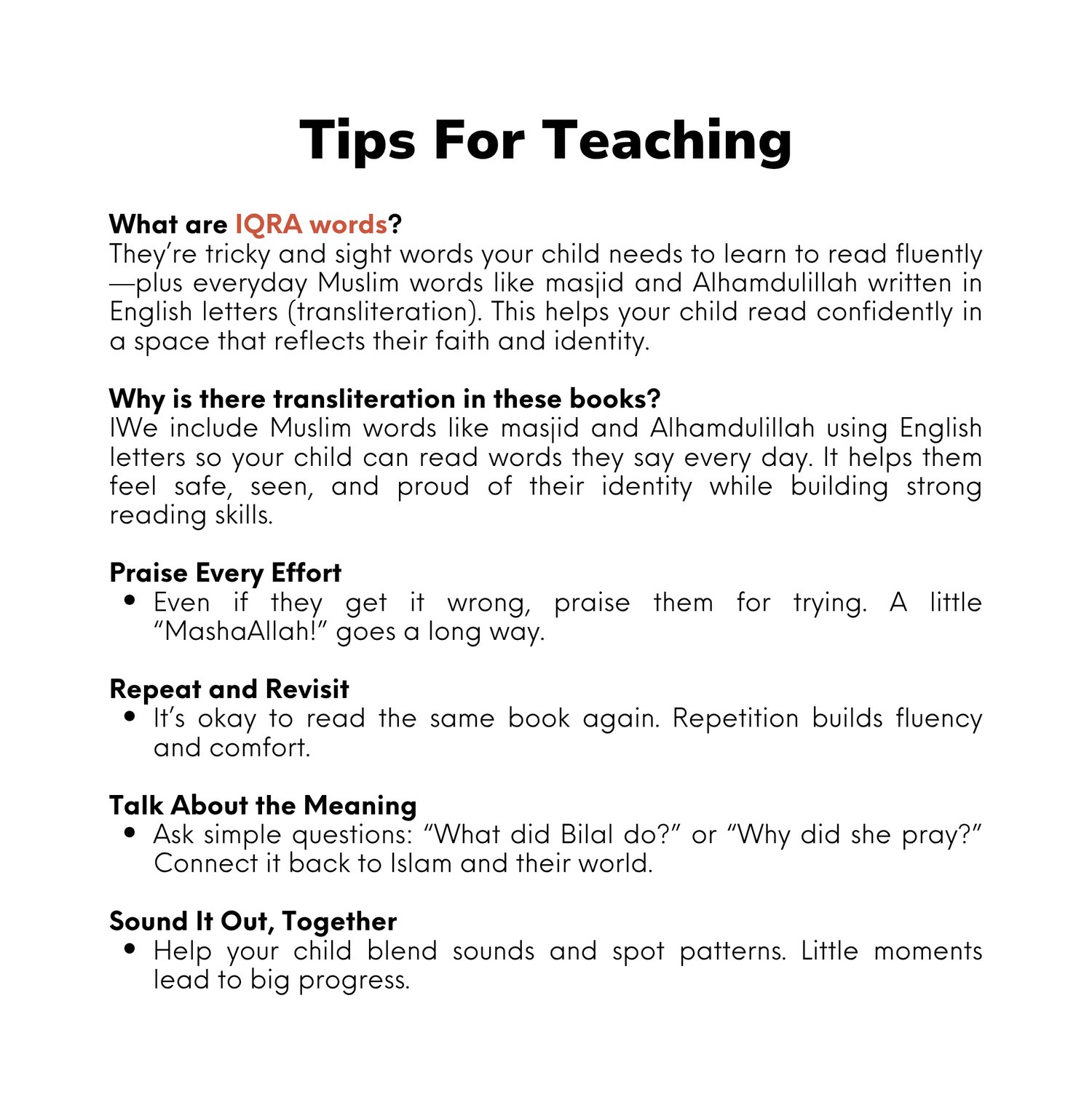 - Sight & Tricky Words (Iqra Words): one, old, said, every, what, some, saw, when, surah’s