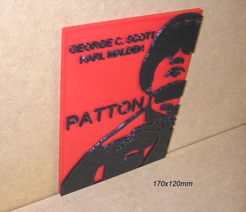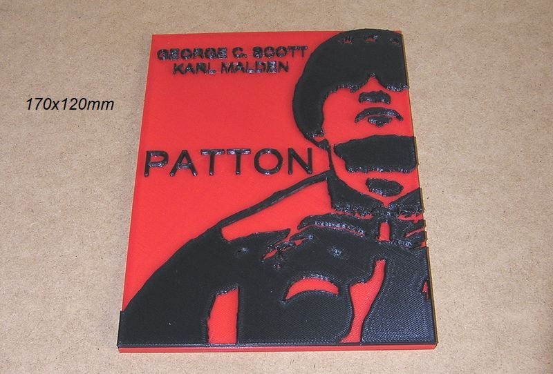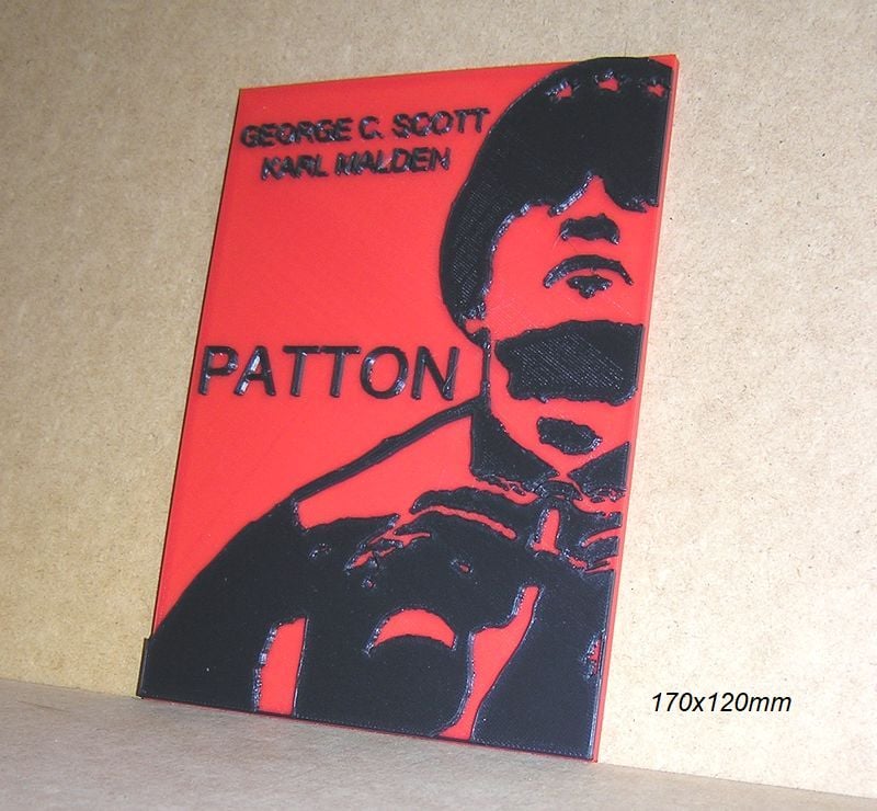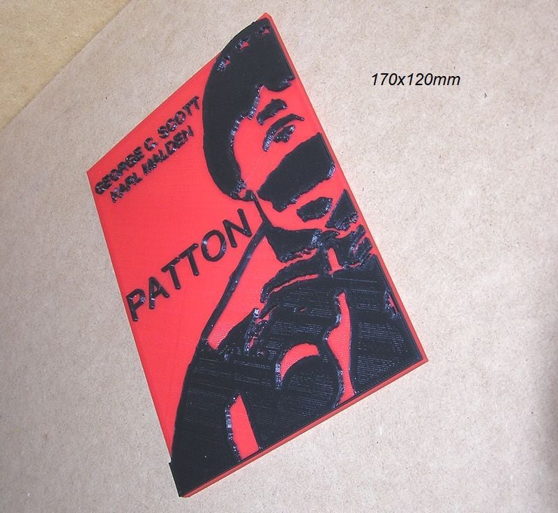 Patton Poster, Sign, Logo of the movie, these STL and Gcode files have been created to be printed in various colors with any FDM type printer. The color changes have been made with the Elegoo Neptune 3 Pro printer, but they can be printed on any printer.