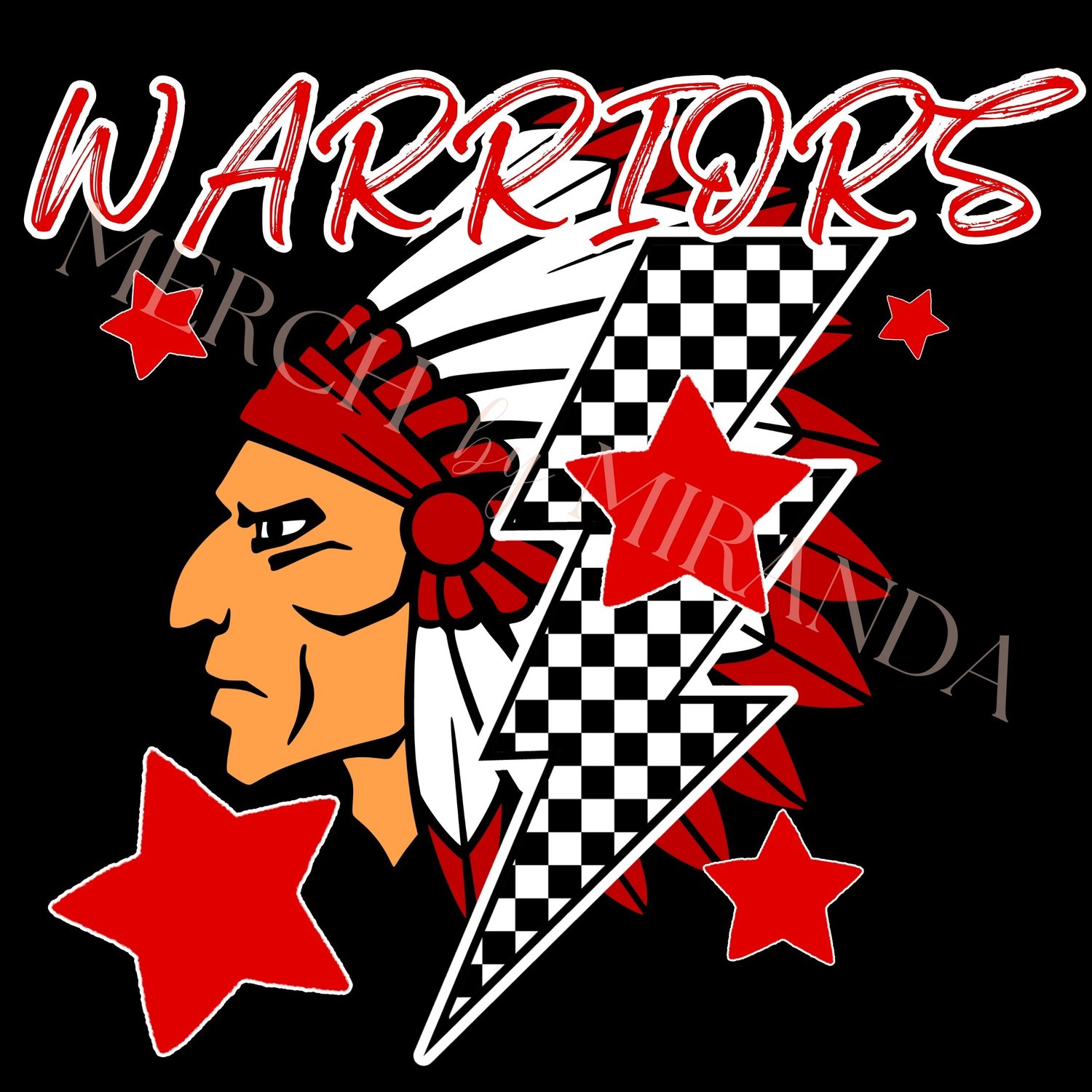 Warrior Mascot Red | Sublimation Design | Digital Download | School Spirit Shirt PNG | DTF Design | Lightning Bolt-Checkered with Stars - Warriors