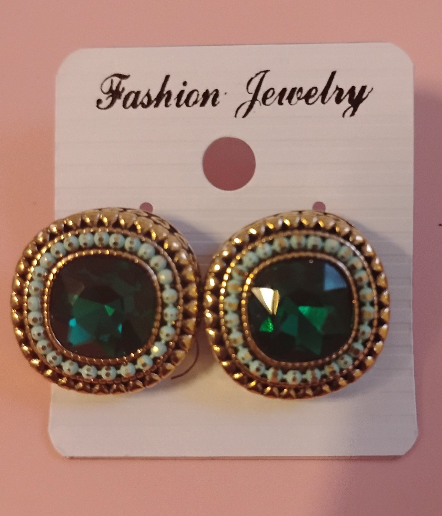 Emerald Earrings with Gold Earrings, these are pretty favorites, emerald, is a rare gem, this pair of earrings has marble detail.