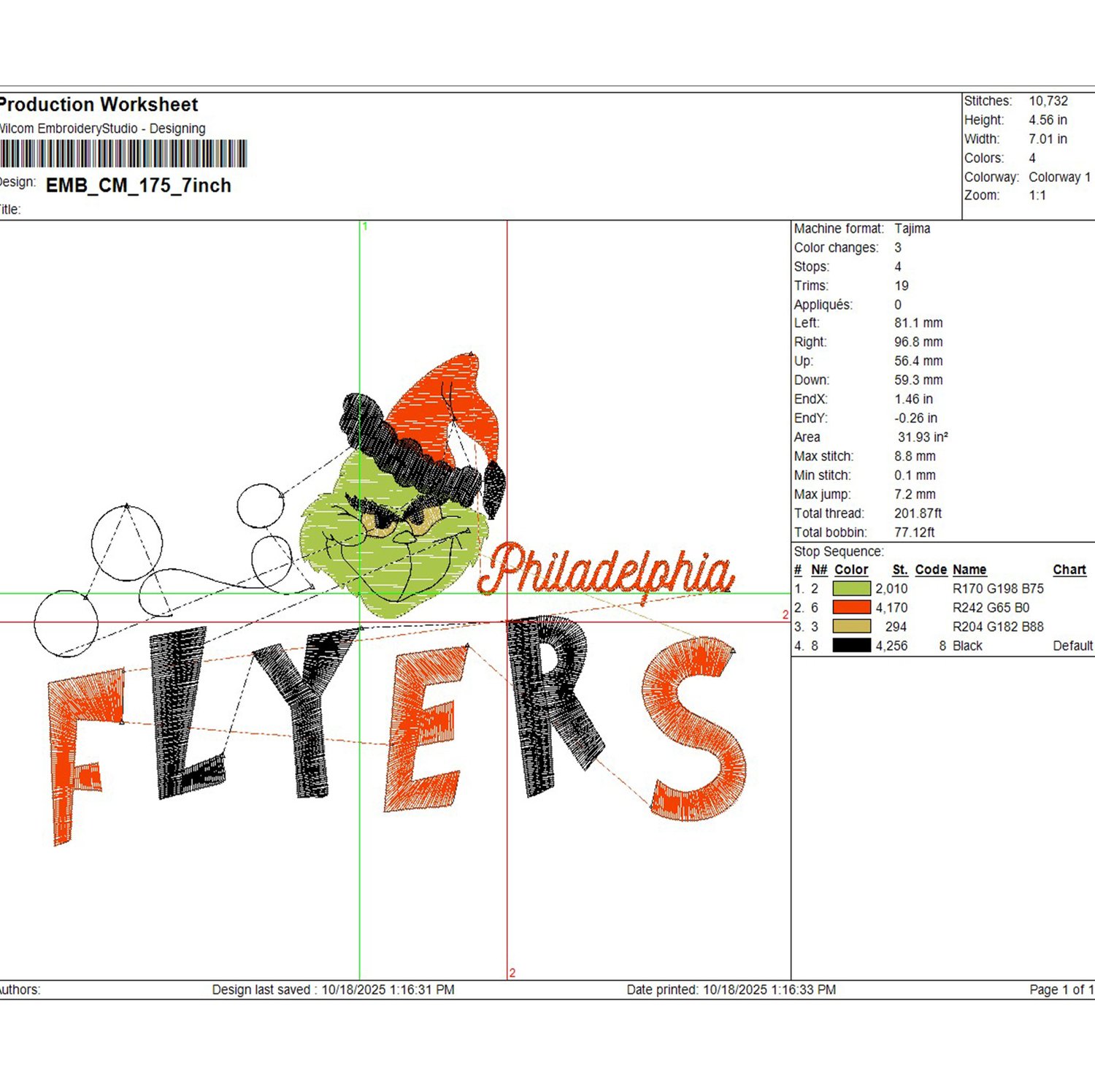 #ChristmasGrinch #PhiladelphiaFlyers #NHLEmbroidery #GrinchEmbroidery #FlyersLogo #HockeyEmbroidery #MerryChristmasDesign #MachineEmbroidery #DigitalDownload #EmbroideryFiles