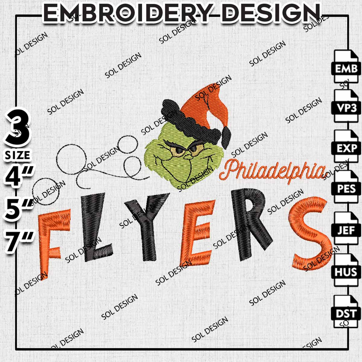 Christmas Grinch x Philadelphia Flyers NHL Team Embroidery Designs, Grinch Embroidery Files, NHL Flyers Hockey Team Logo Embroidery, Merry Christmas Machine Embroidery Design, Digital Download