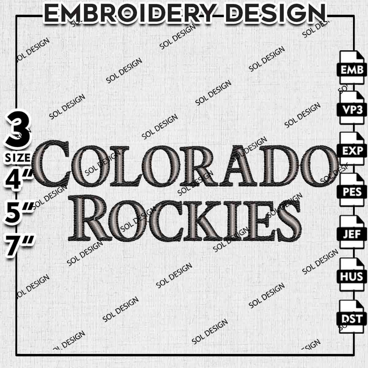 MLB Colorado Rockies Word Logo Embroidery Designs, MLB Colorado Rockies Logo Embroidery Files, Baseball League Logo Embroidery, MLB Rockies Team Machine Embroidery Design, 3 sizes, Digital Download